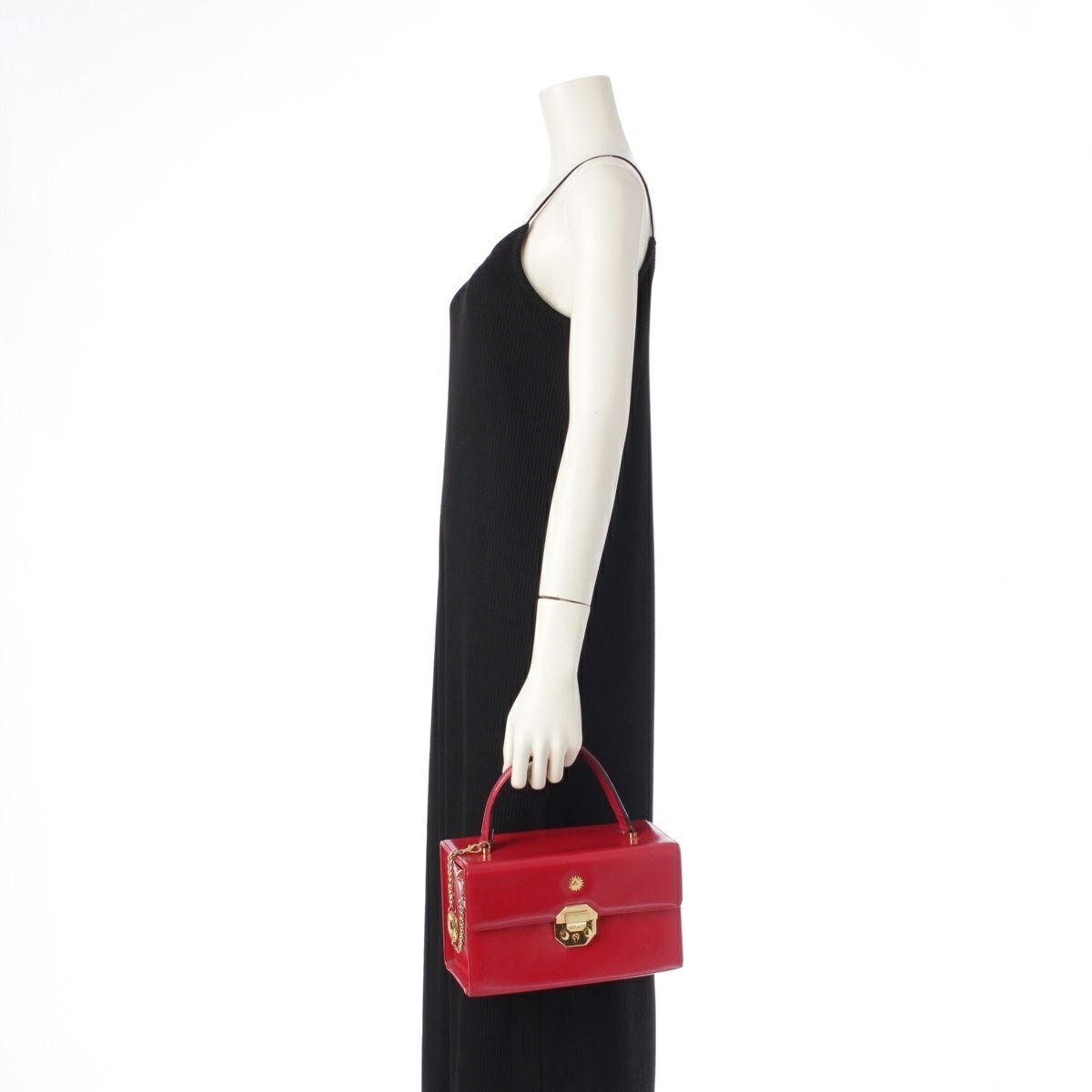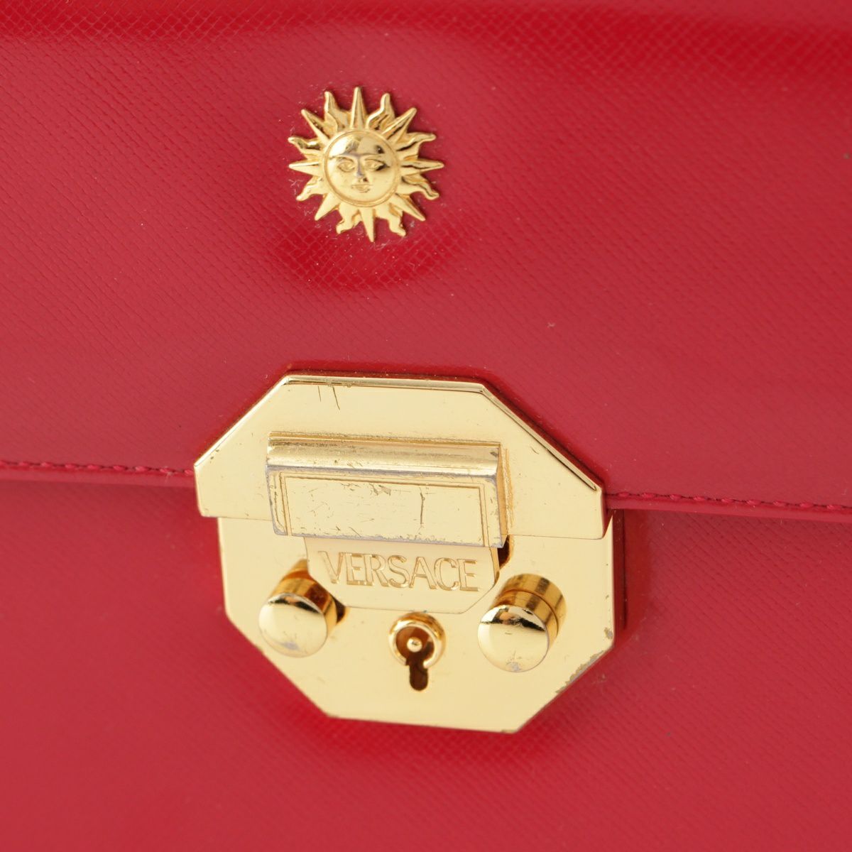 ジャンニ・ヴェルサーチェ レザー トップハンドル チャーム バニティバッグ レッド