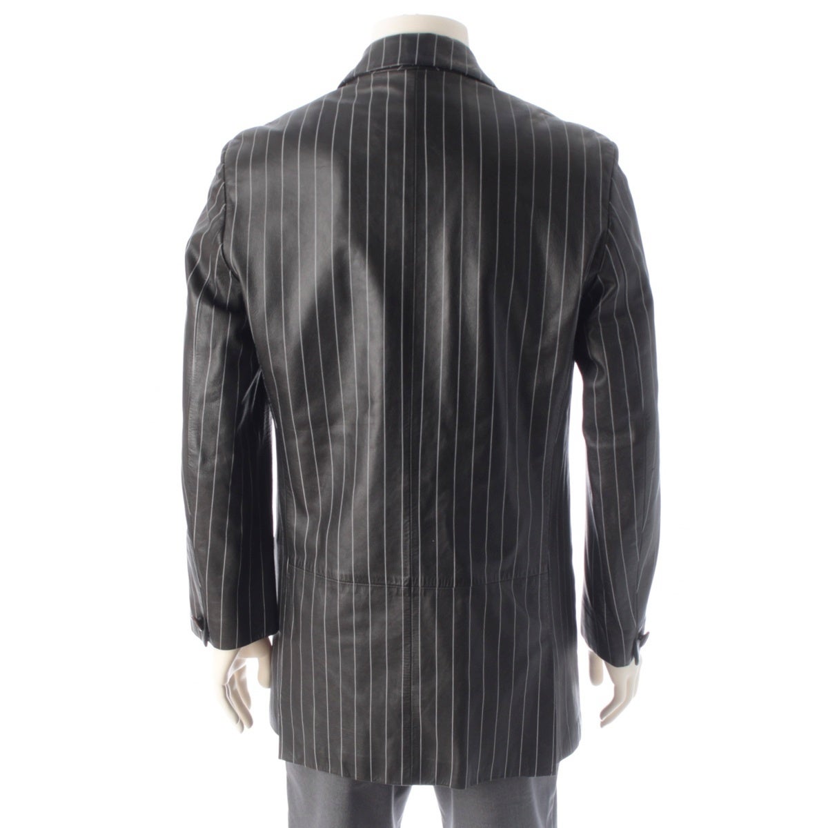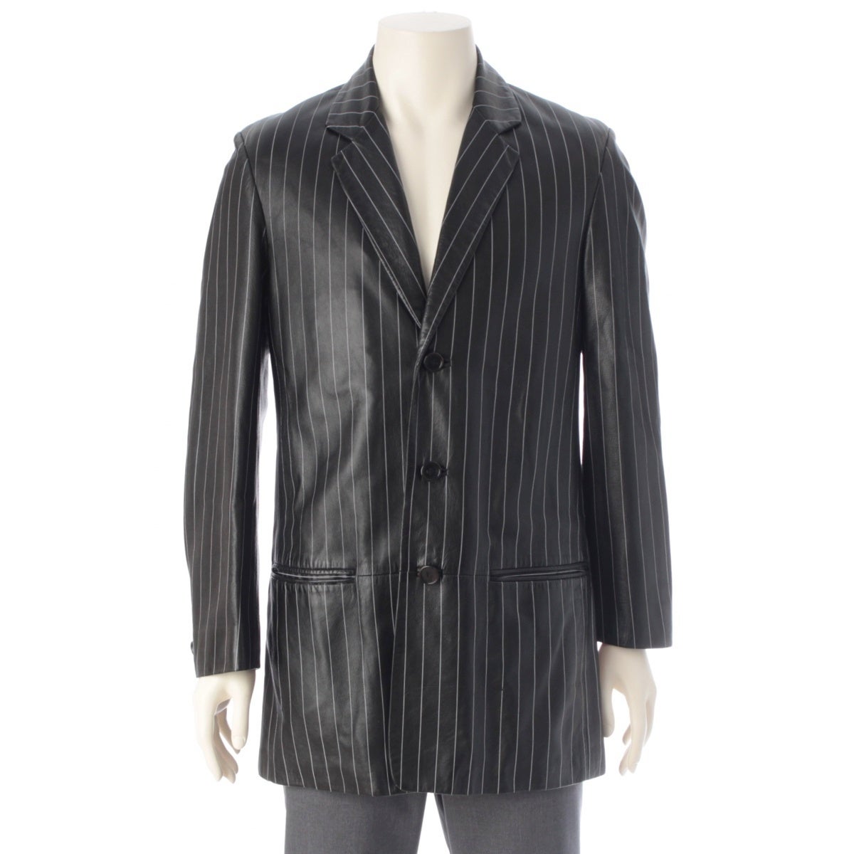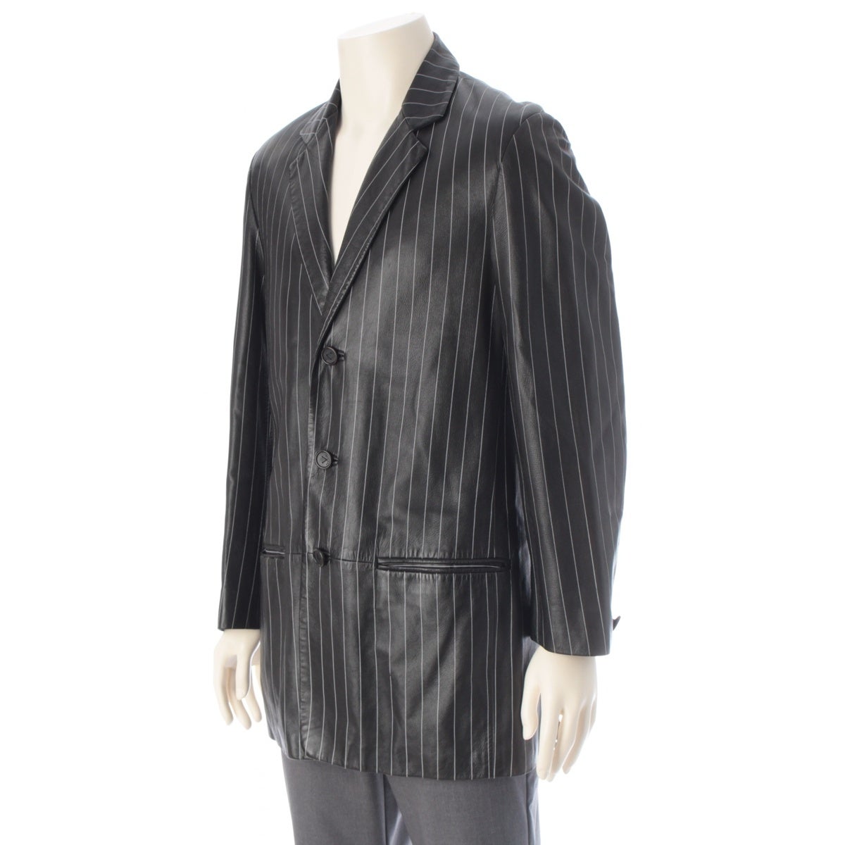 ジャンニ・ヴェルサーチェ 90s レザー ペイントストライプ ロングジャケット コート メドゥーサ裏地 ブラック ホワイト