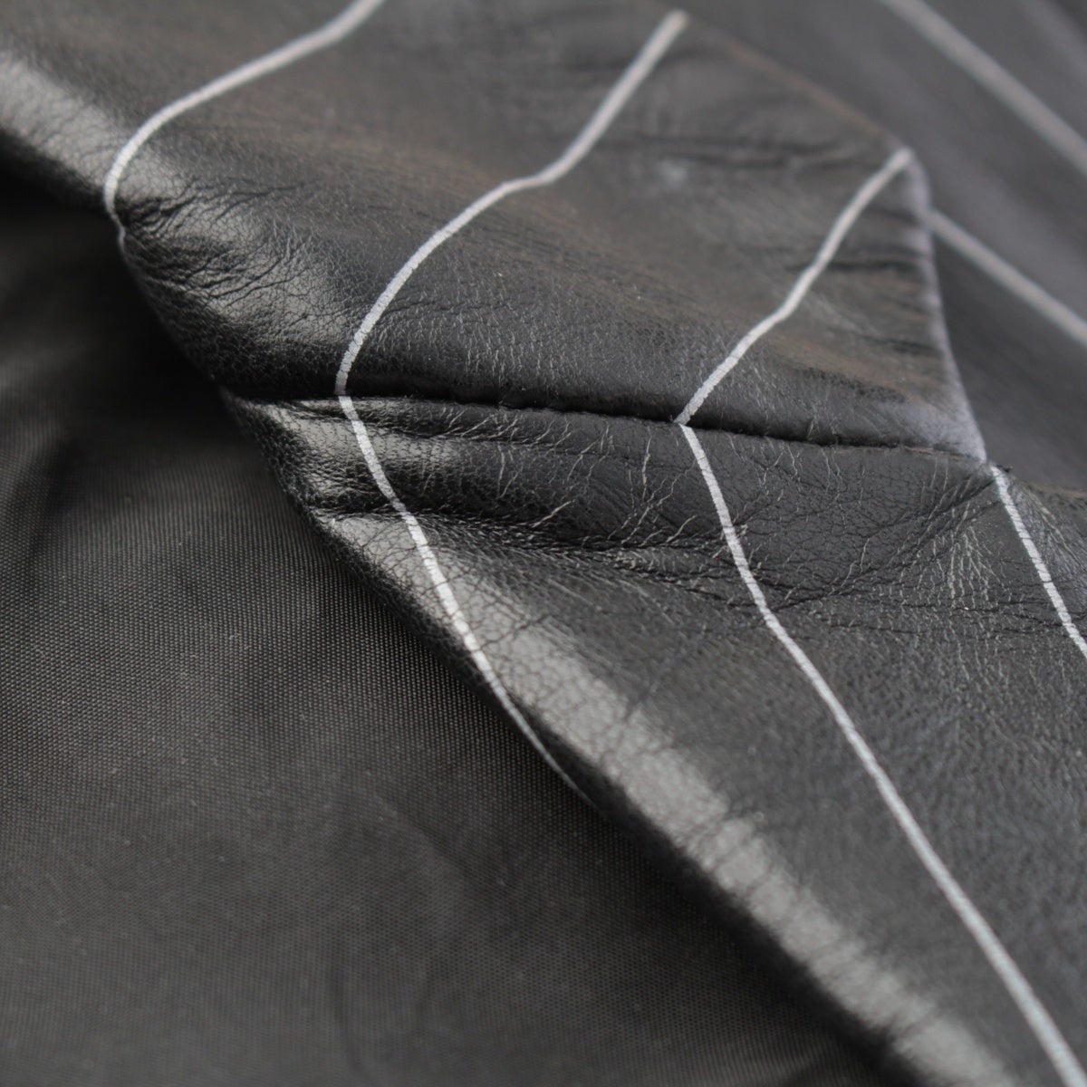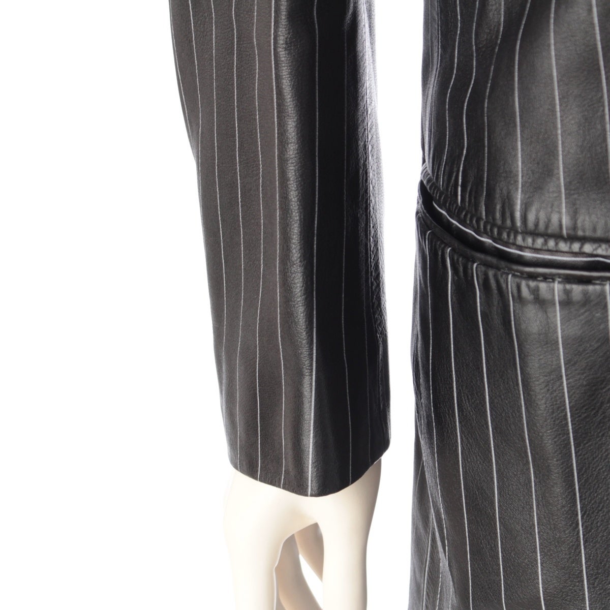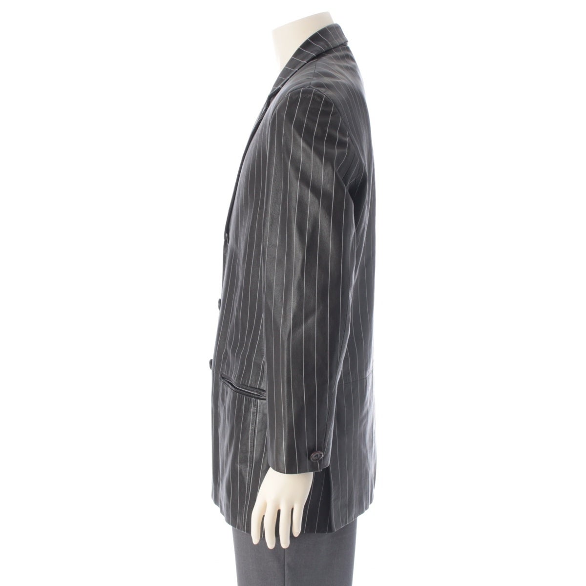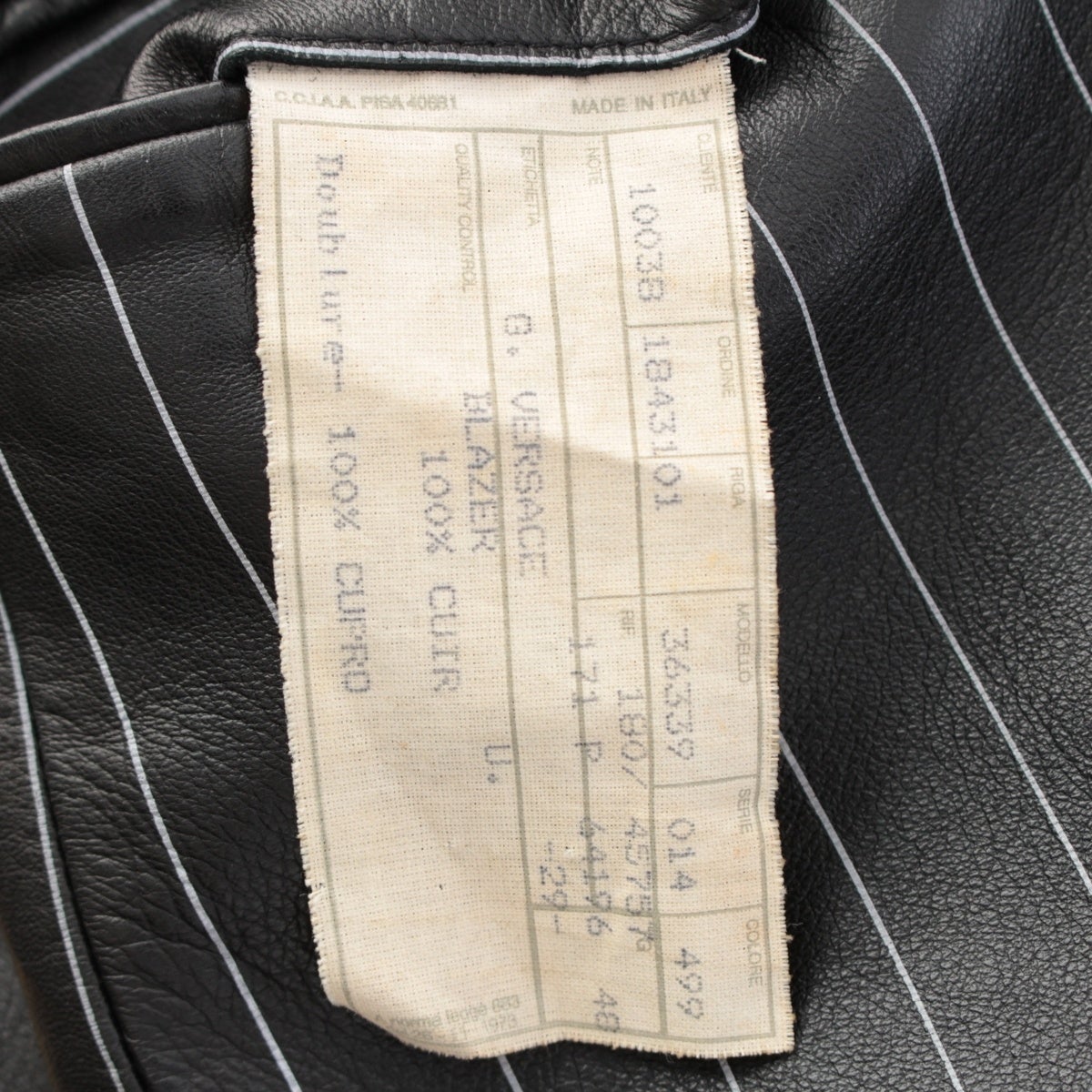 ジャンニ・ヴェルサーチェ 90s レザー ペイントストライプ ロングジャケット コート メドゥーサ裏地 ブラック ホワイト