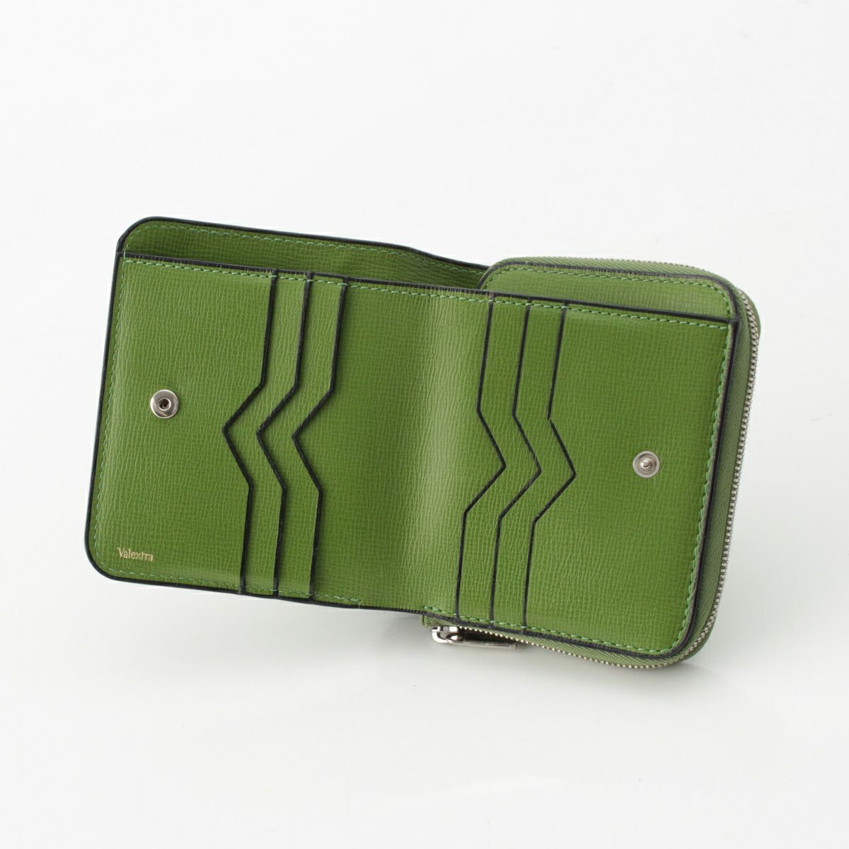 ヴァレクストラ パース グレインカーフスキン ラウンドジップ 二つ折り財布 ウォレット グラスグリーン
