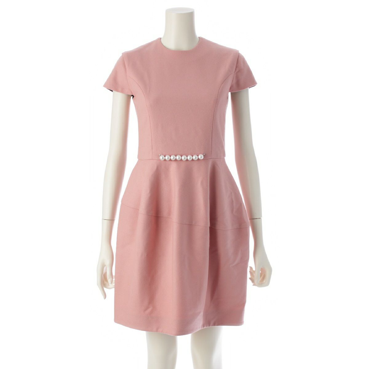 ヨーコチャン 20年 ウール パール バックジップ 半袖 ひざ丈 ワンピース YCD-520-542 ピンク 36