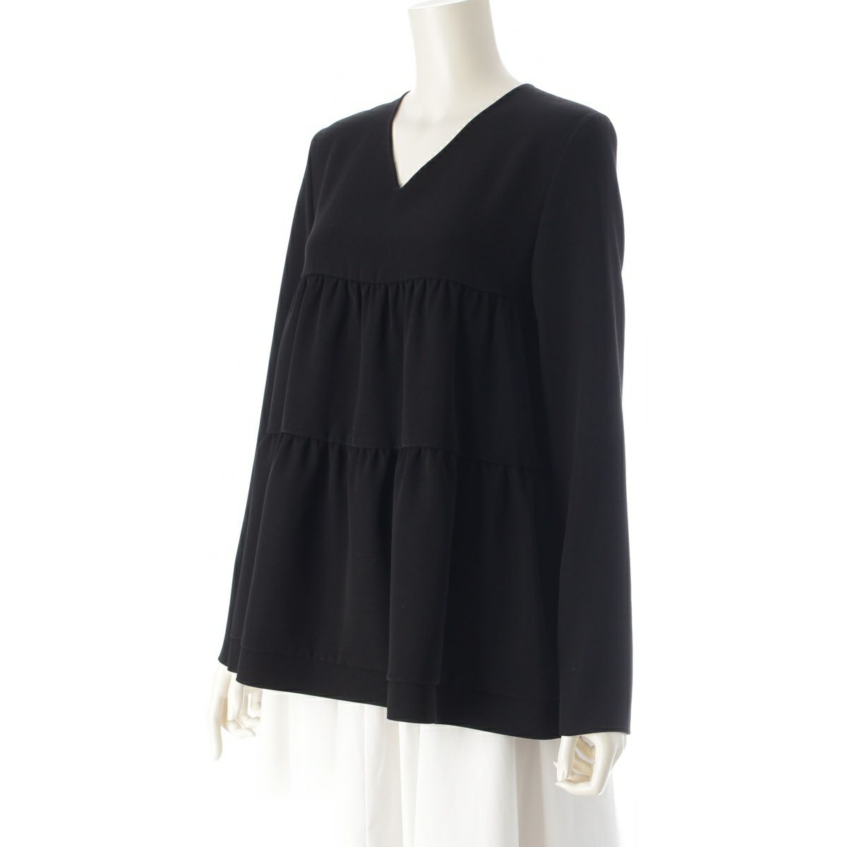 ヨーコチャン 24年 ロングスリーブ Vネック ボリューム ブラウス トップス YCB-124-416 ブラック 38