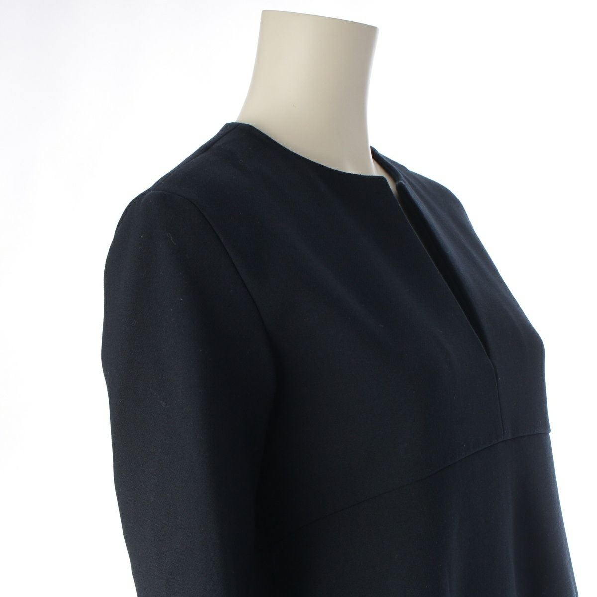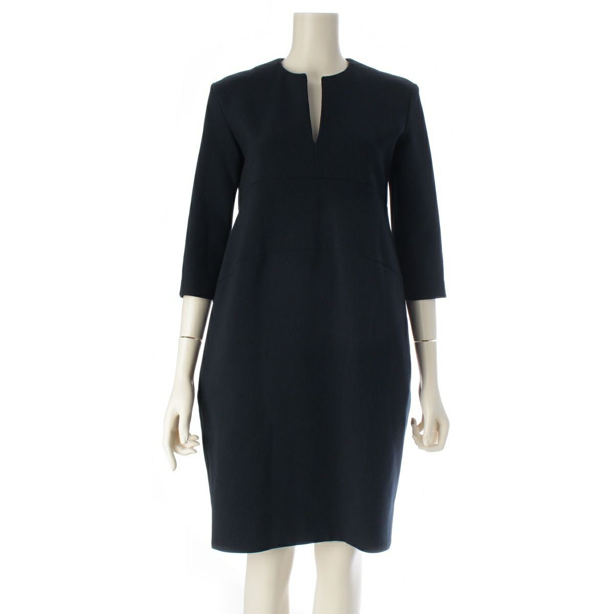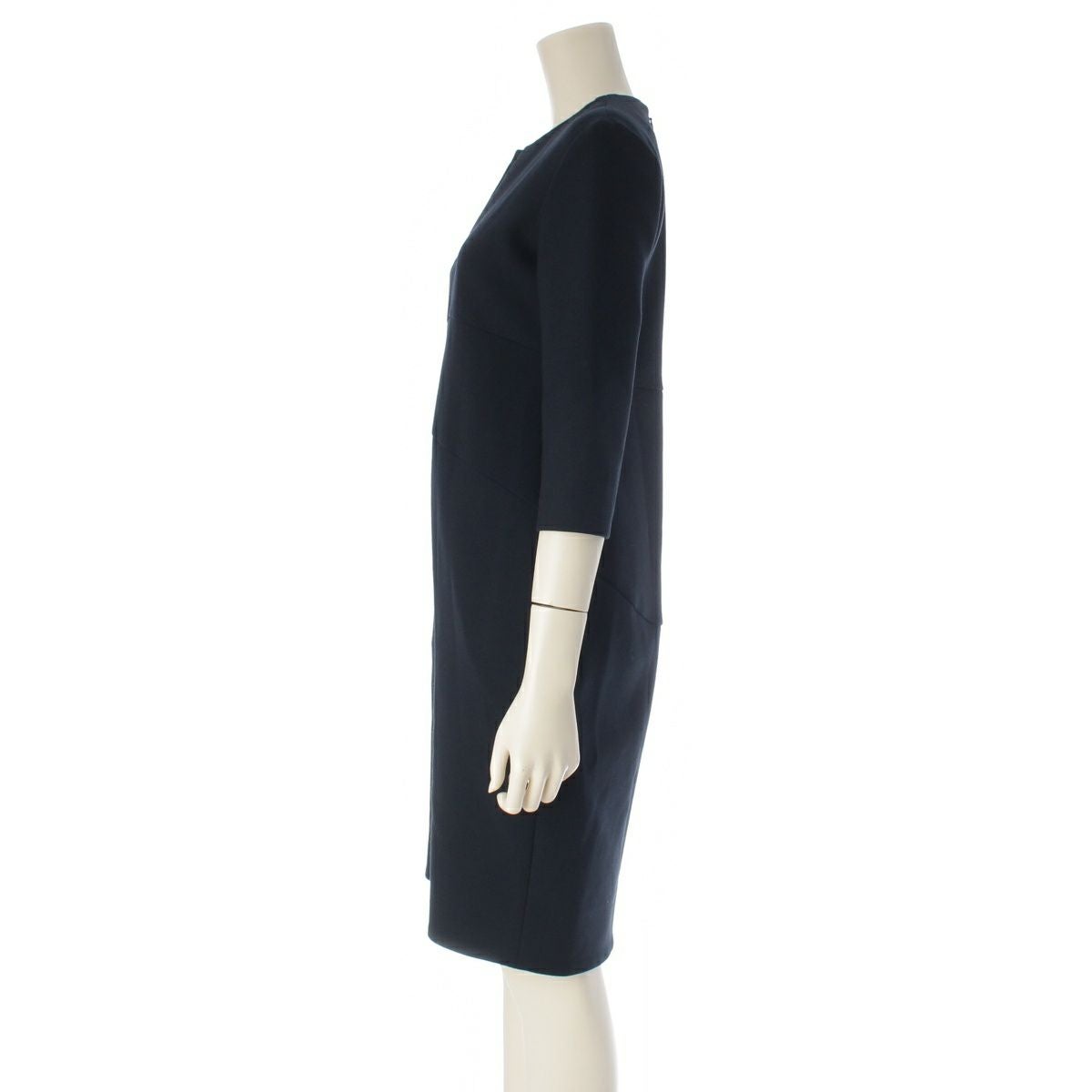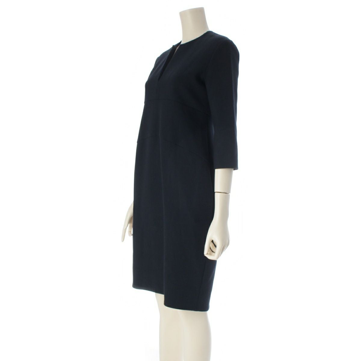 ヨーコチャン 18年 キーネック バックジップ 七分袖 ワンピース ドレス YCD-218-430 ネイビー 36
