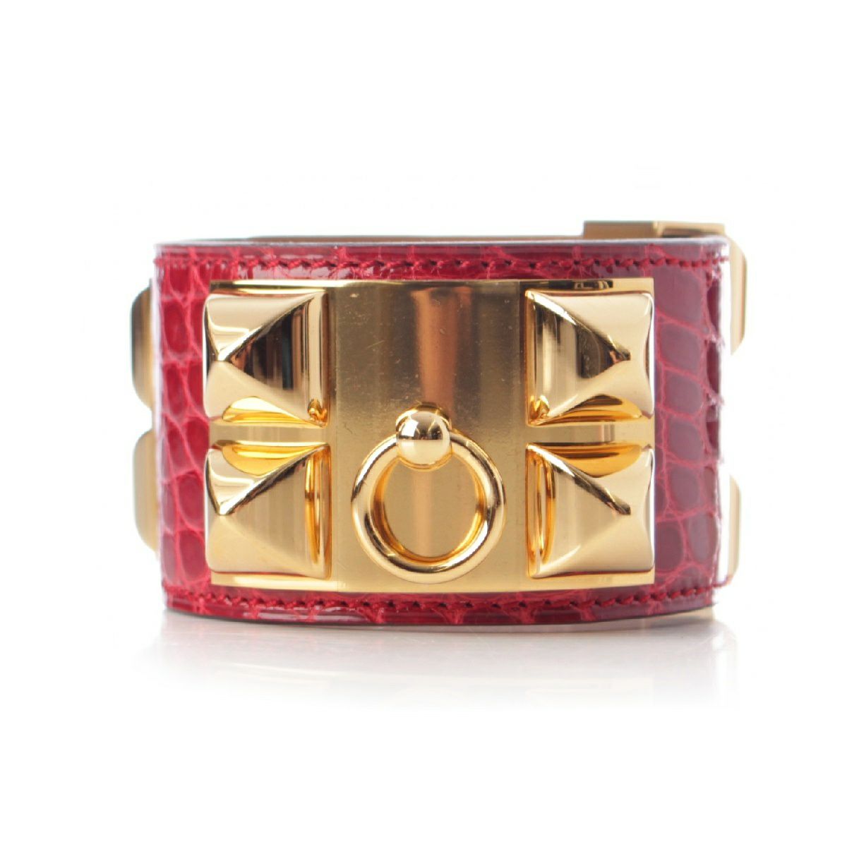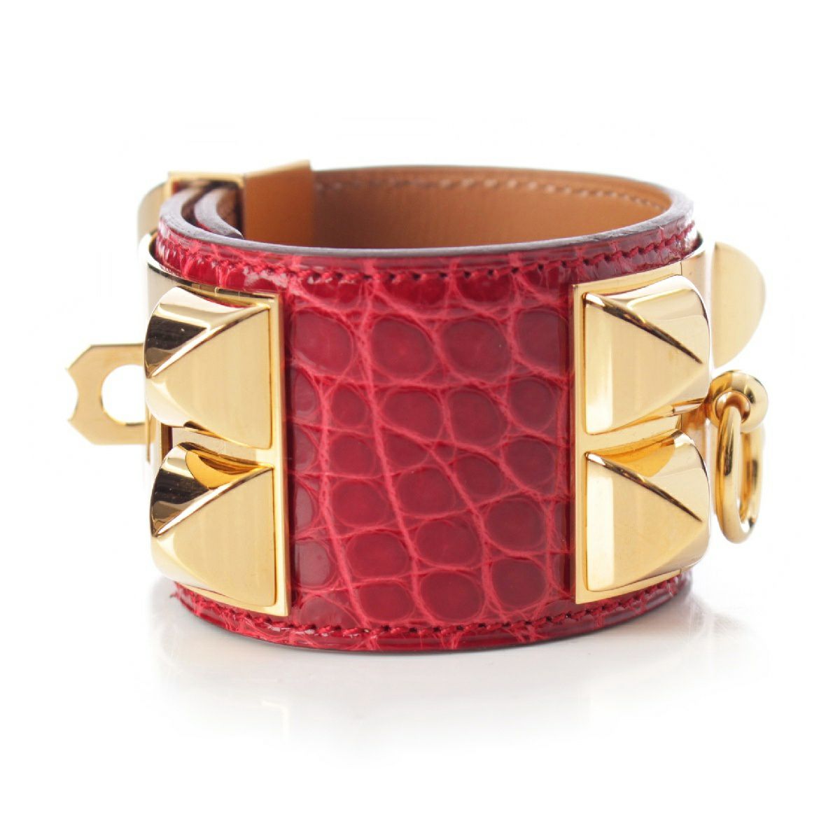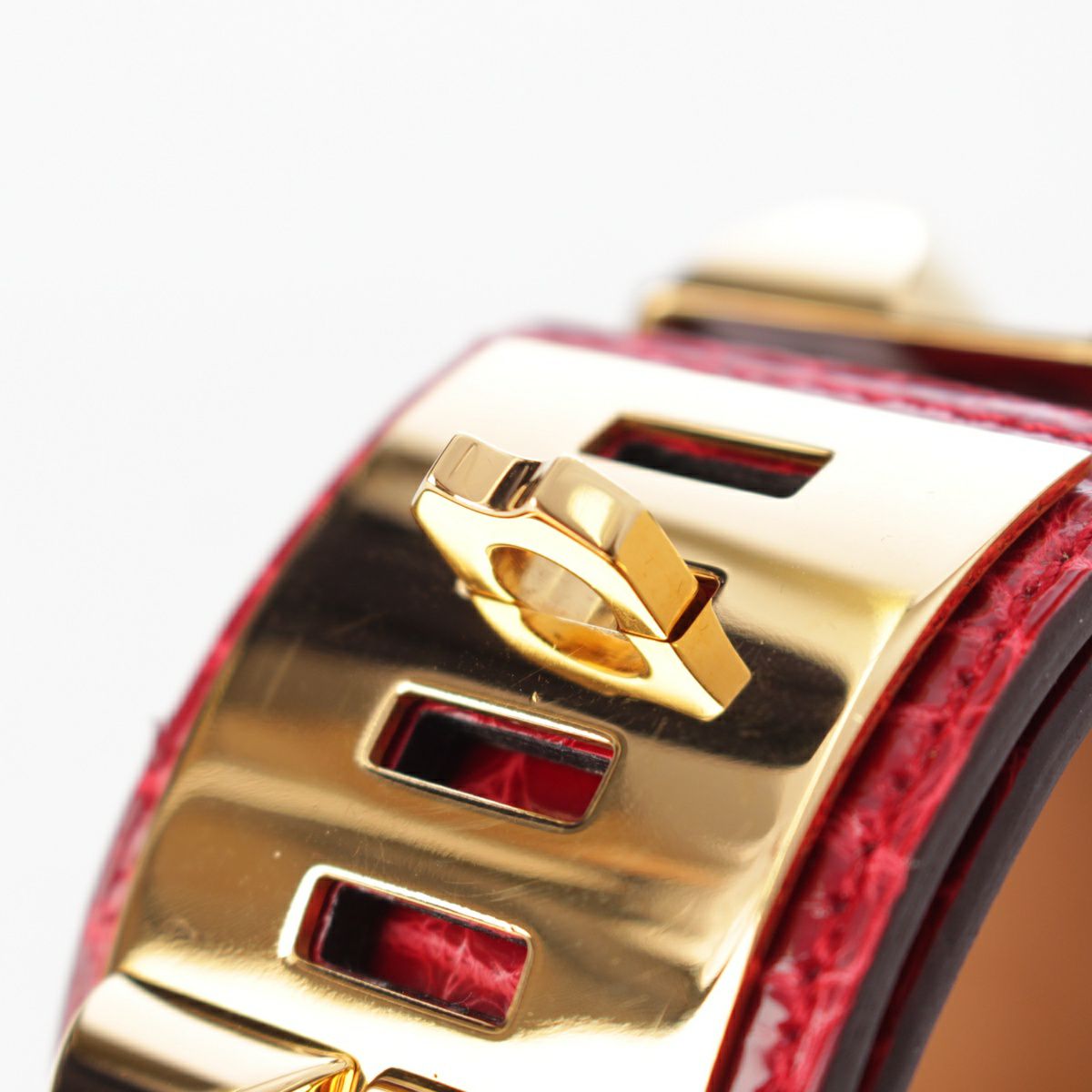 エルメス A刻 コリエドシアン アリゲーター クロコレザー バングル ブレスレット シャイニーレッド ゴールド金具 T2