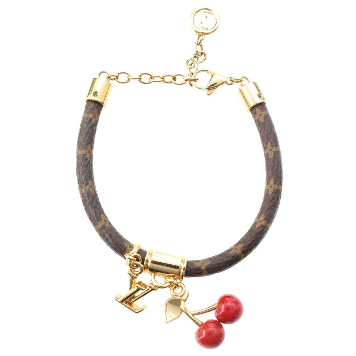 ルイヴィトン 村上隆 レザー モノグラム チェリー ブレスレット アクセサリー ブラウン×ゴールド