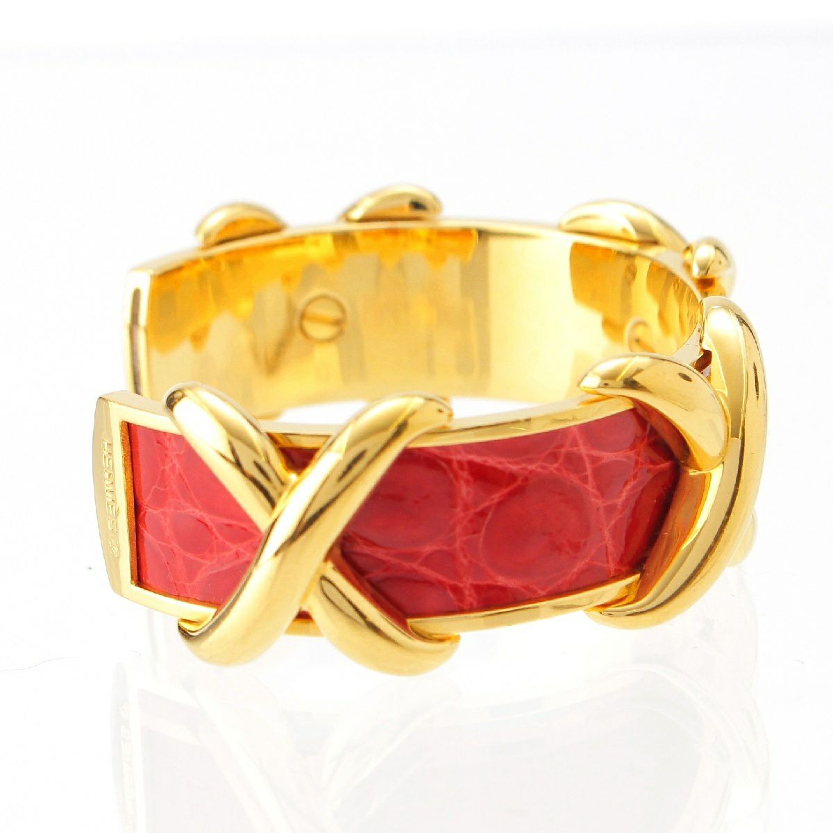 エルメス クロコダイル レザー クロス バングル ブレスレット アクセサリー ゴールド レッド