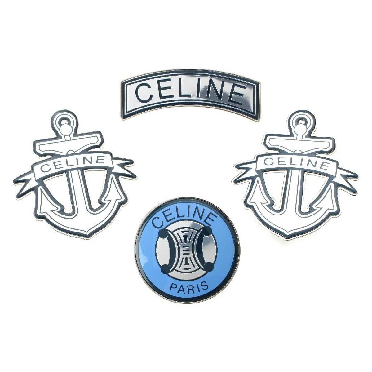 セリーヌ ロゴ アンカー トリオンフ ブローチ 4点セット シルバー ブルー