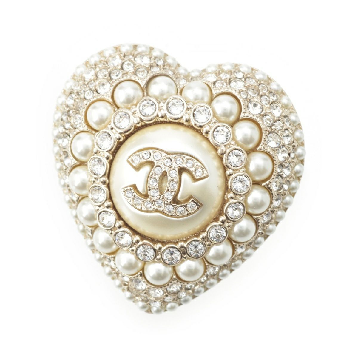 シャネル L22B ココマーク ラインストーン パール ハート ブローチ コサージュ アクセサリー ゴールド