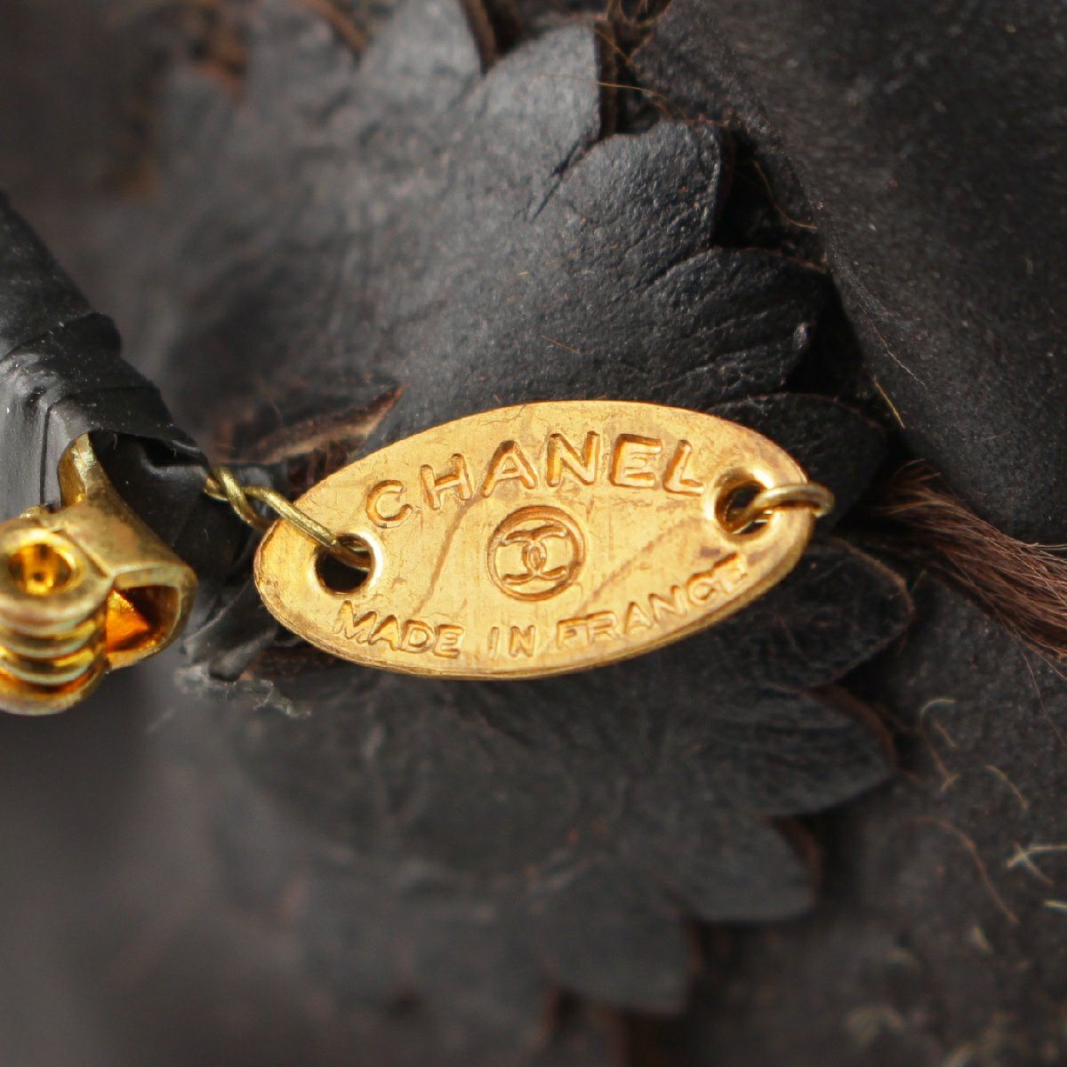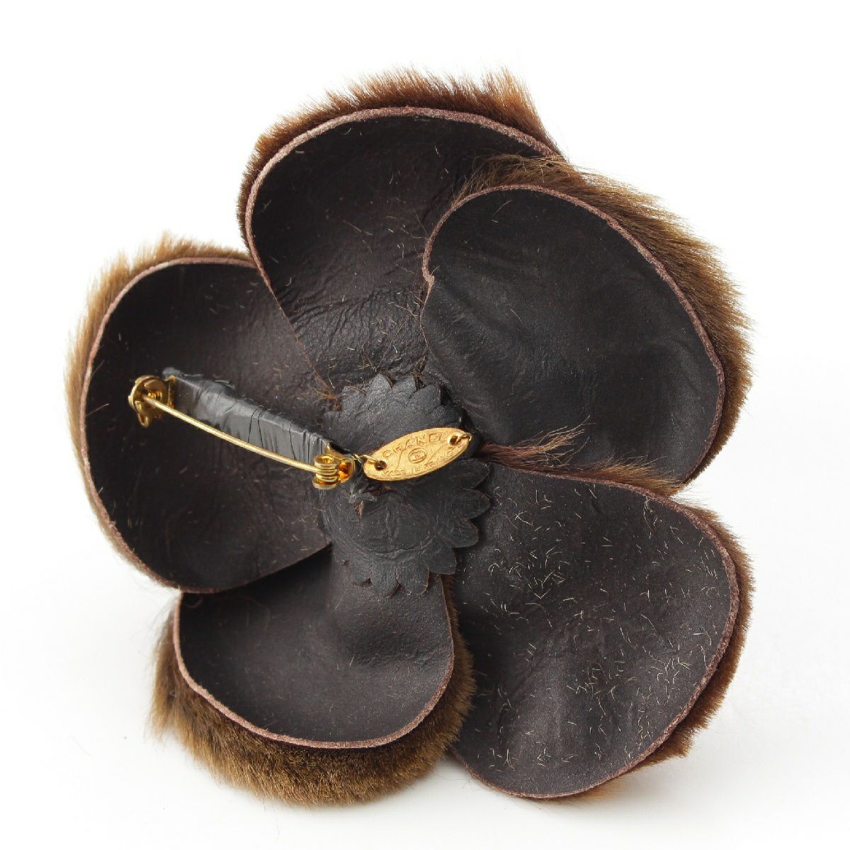 シャネル ファー カメリア ブローチ コサージュ ゴールド金具 ブラウン