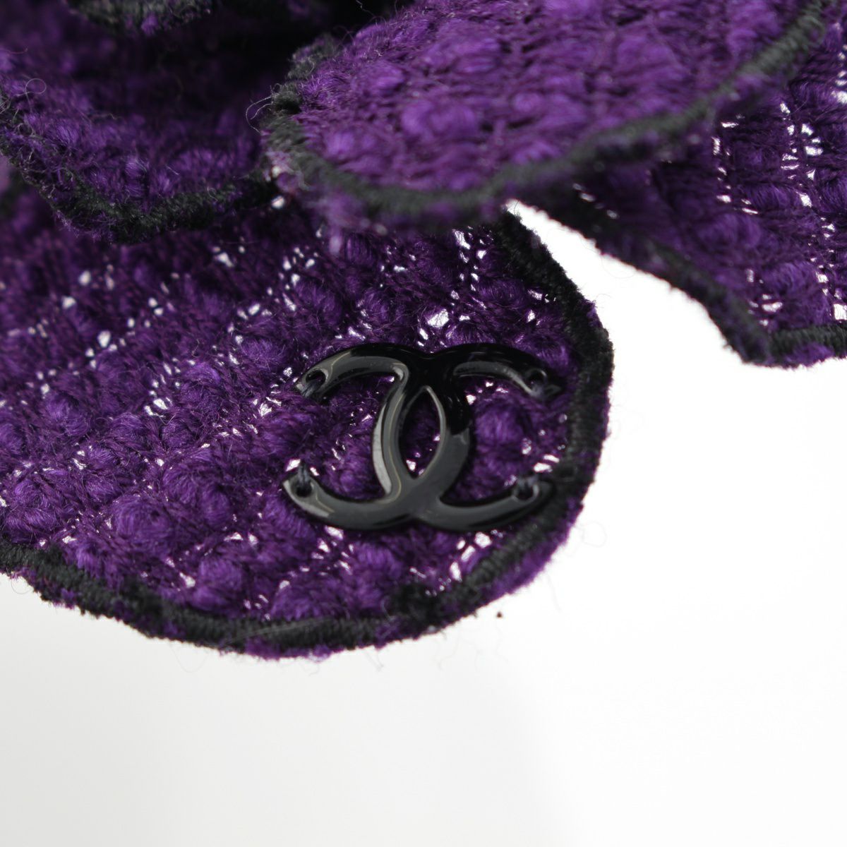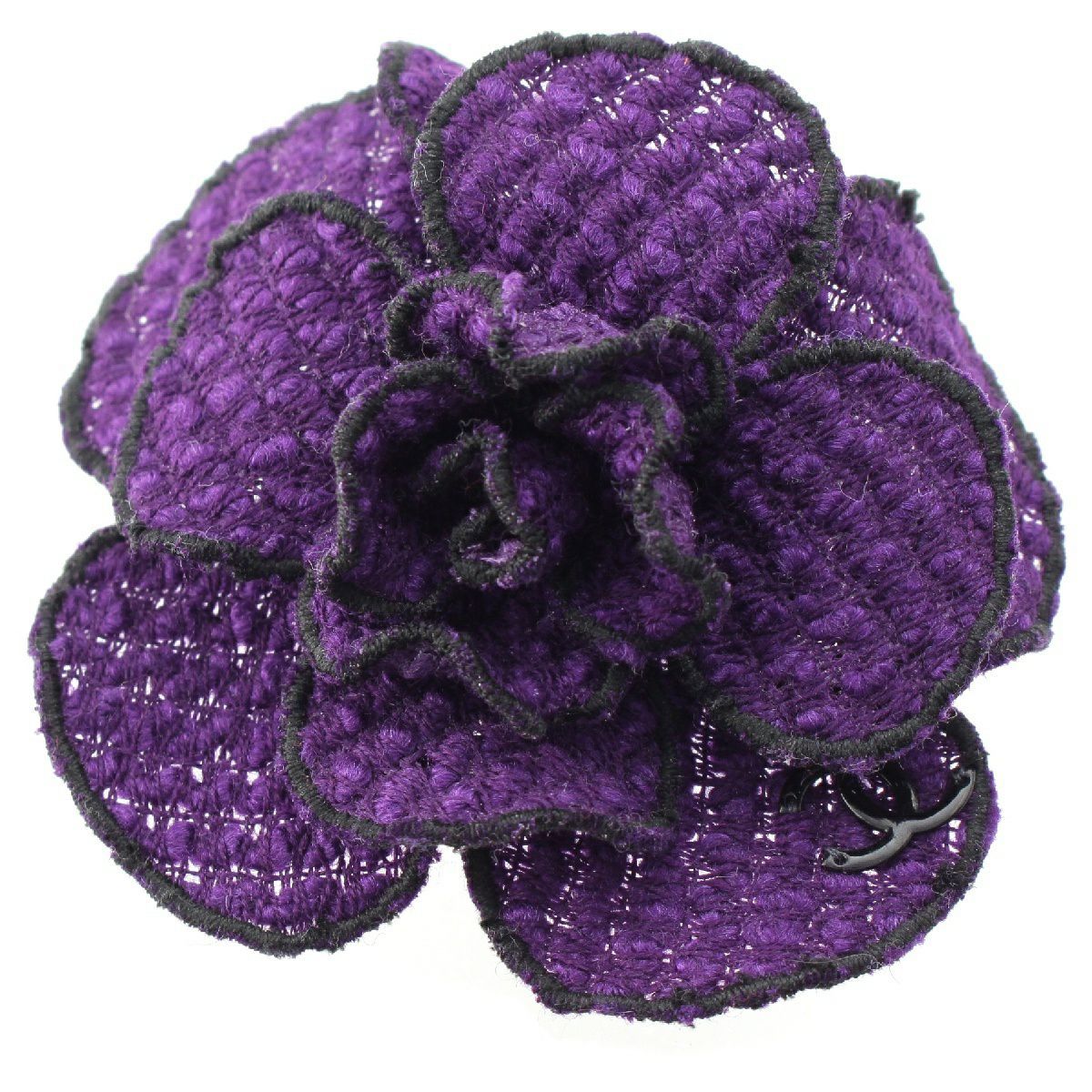 シャネル ツイード ココマーク トリム カメリア ブローチ コサージュ アクセサリー パープル