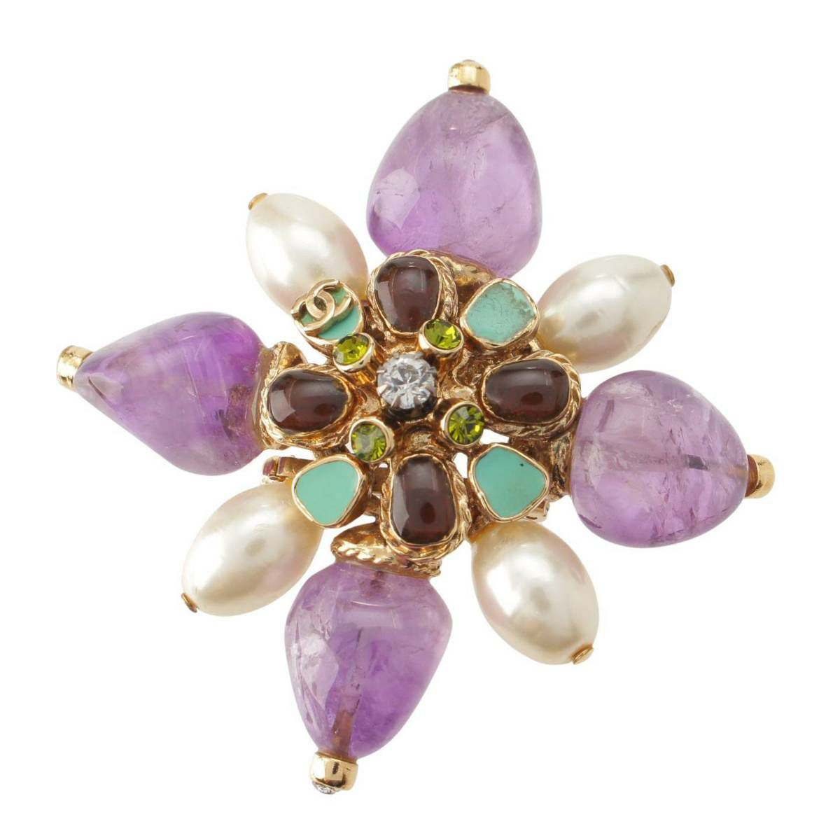 シャネル 05P カラーストーン パール ココマーク ブローチ アクセサリー マルチカラー