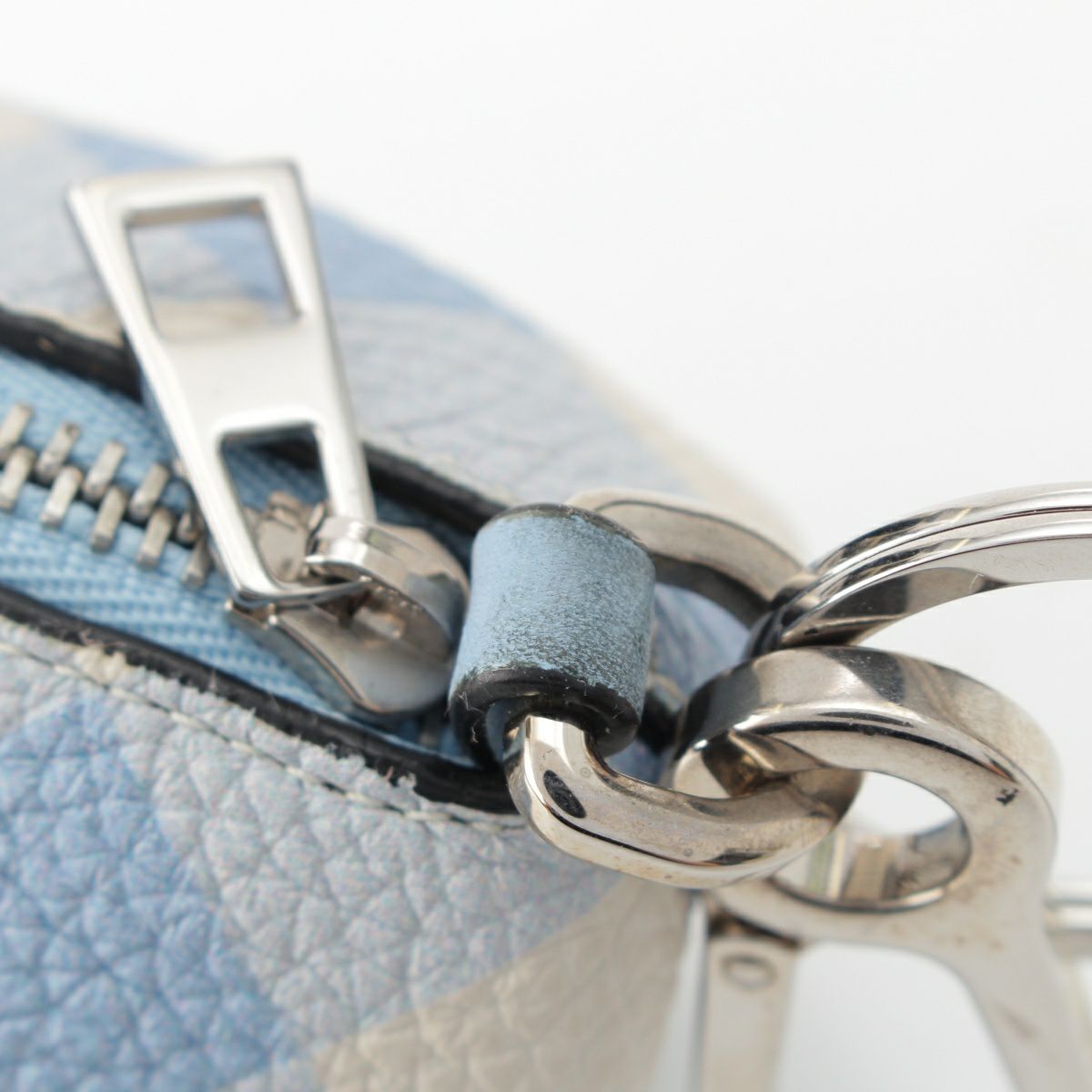 ロエベ レザー エレファント チェック柄 チャーム ブルー