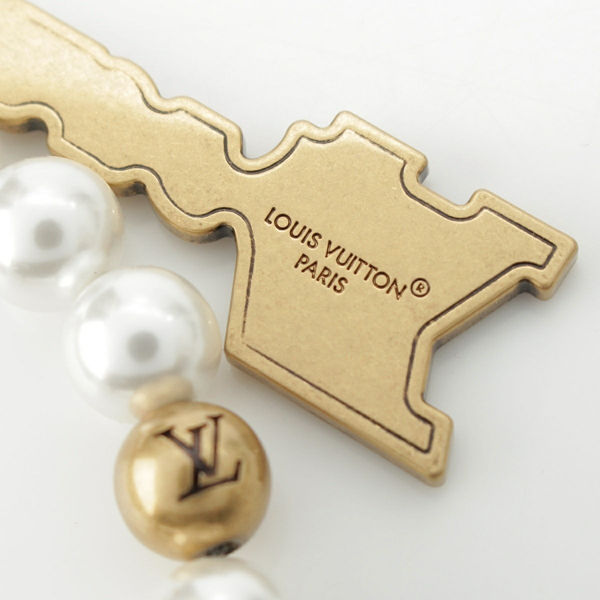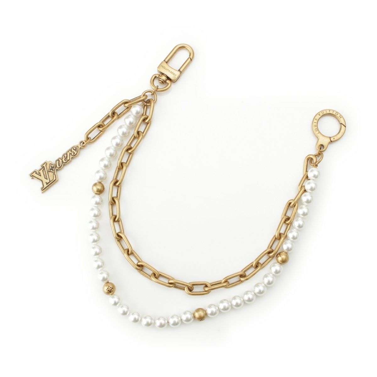ルイヴィトン ロゴ パール チェーン ベルト バッグ チャーム M01689 ゴールド ホワイト