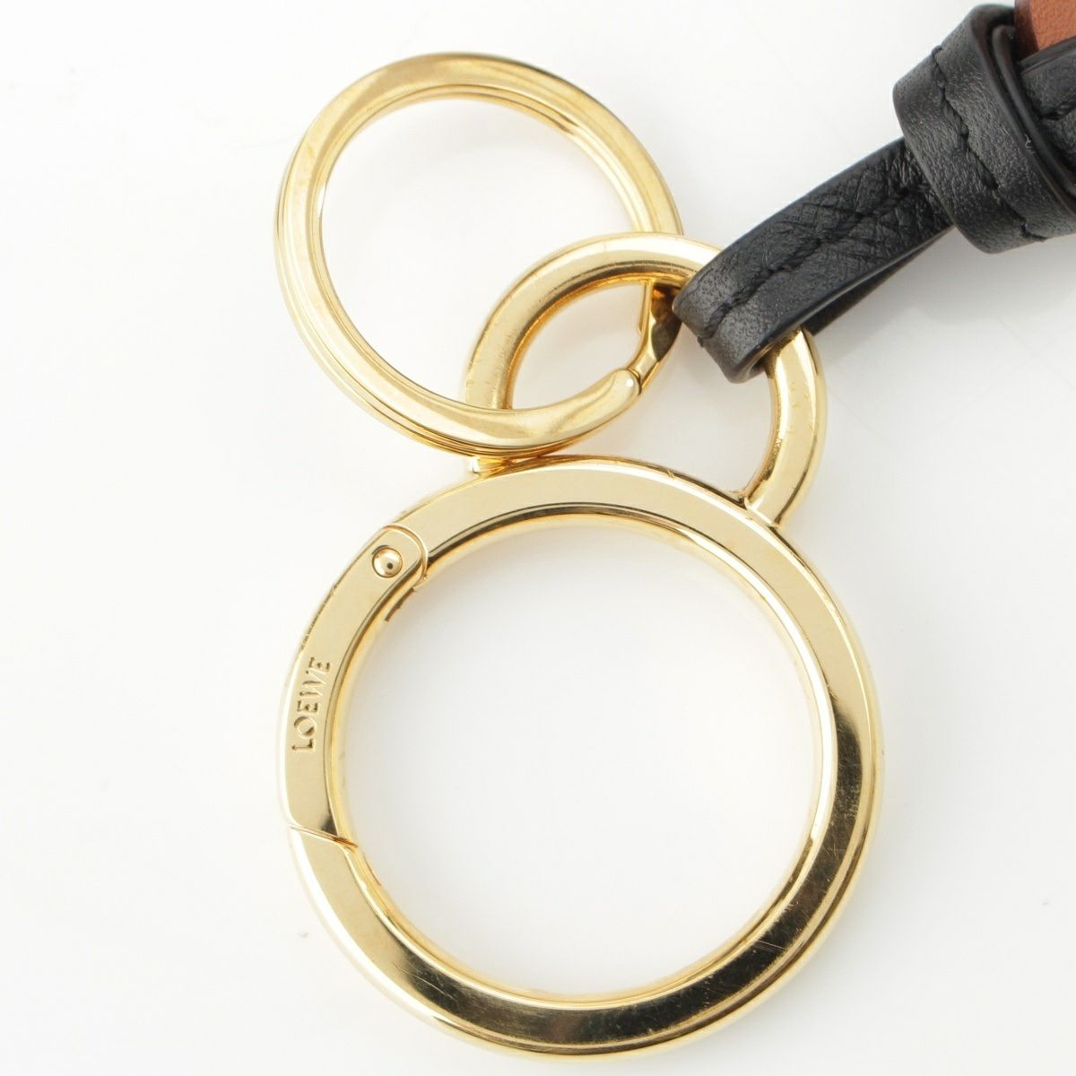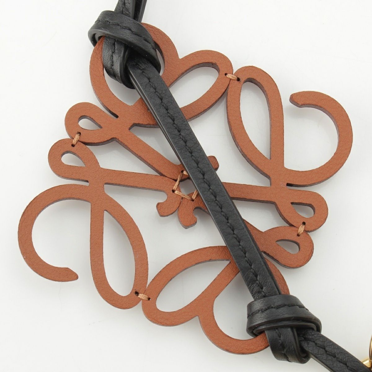 ロエベ レザー アナグラム バッグチャーム ストラップ C621232X83 タン ブラウン ブラック