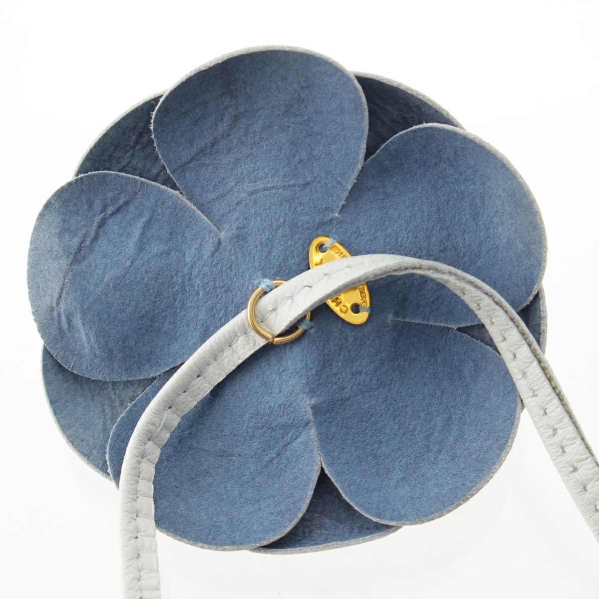 シャネル レザー カメリア チョーカー ネックレス ペンダント リボン アクセサリー ライトグレー