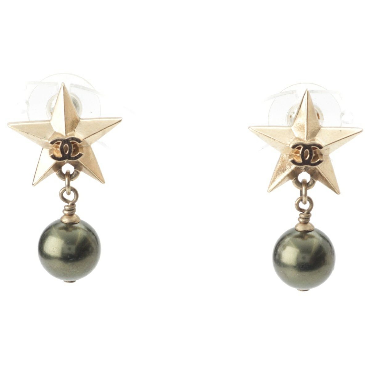 シャネル 17C ココマーク スター 星 ドロップFパール ピアス イヤリング アクセサリー ゴールド