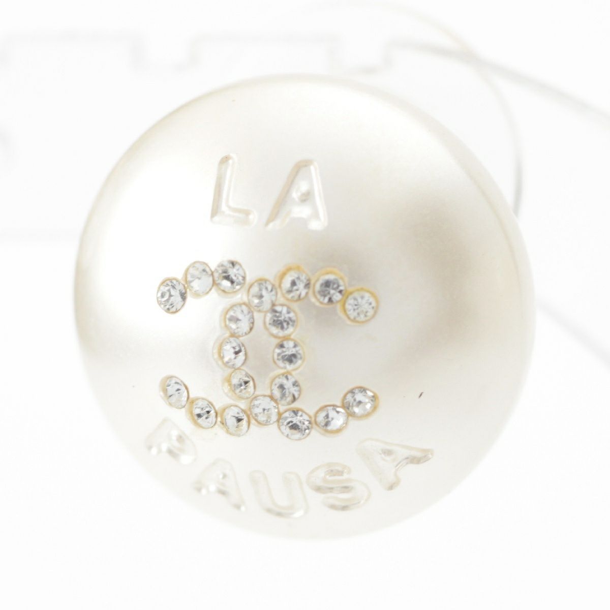 シャネル 19C LA PAUSA ココマーク ラインストーン Fパール ピアス イヤリング アクセサリー AB0757 ホワイト