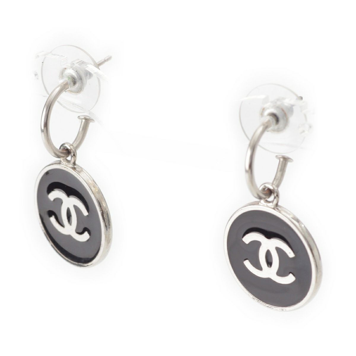 シャネル 04V ココマーク サークル ピアス アクセサリー ブラック×シルバー