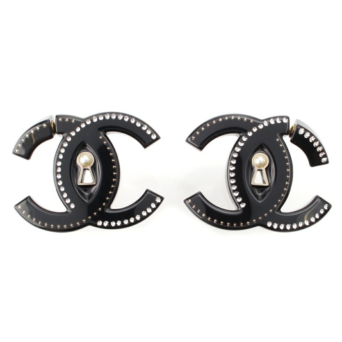 シャネル B22C プラスチック ココマーク ラインストーン パール ピアス アクセサリー ブラック