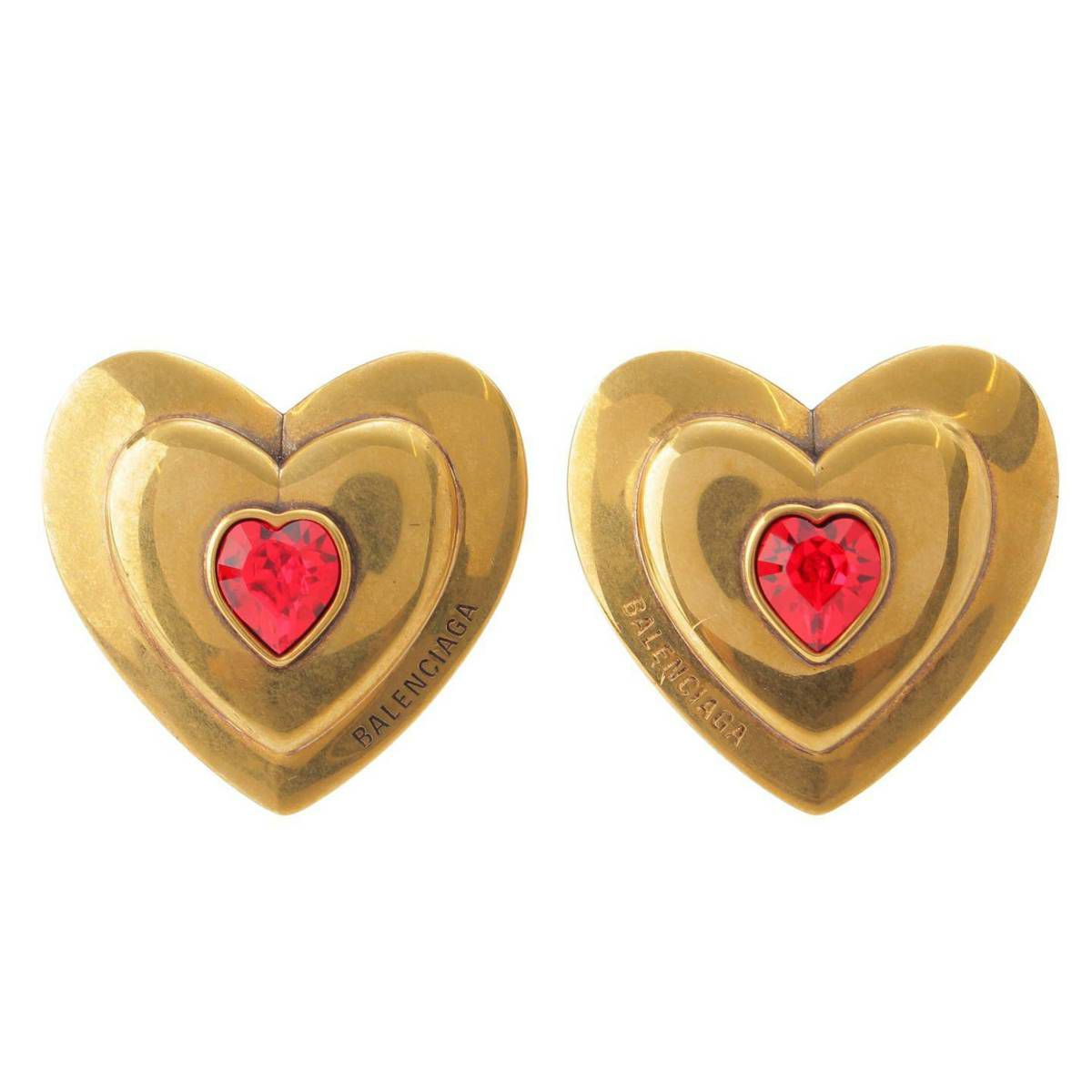 バレンシアガ ハート カラーストーン ロゴ ピアス アクセサリー ゴールド