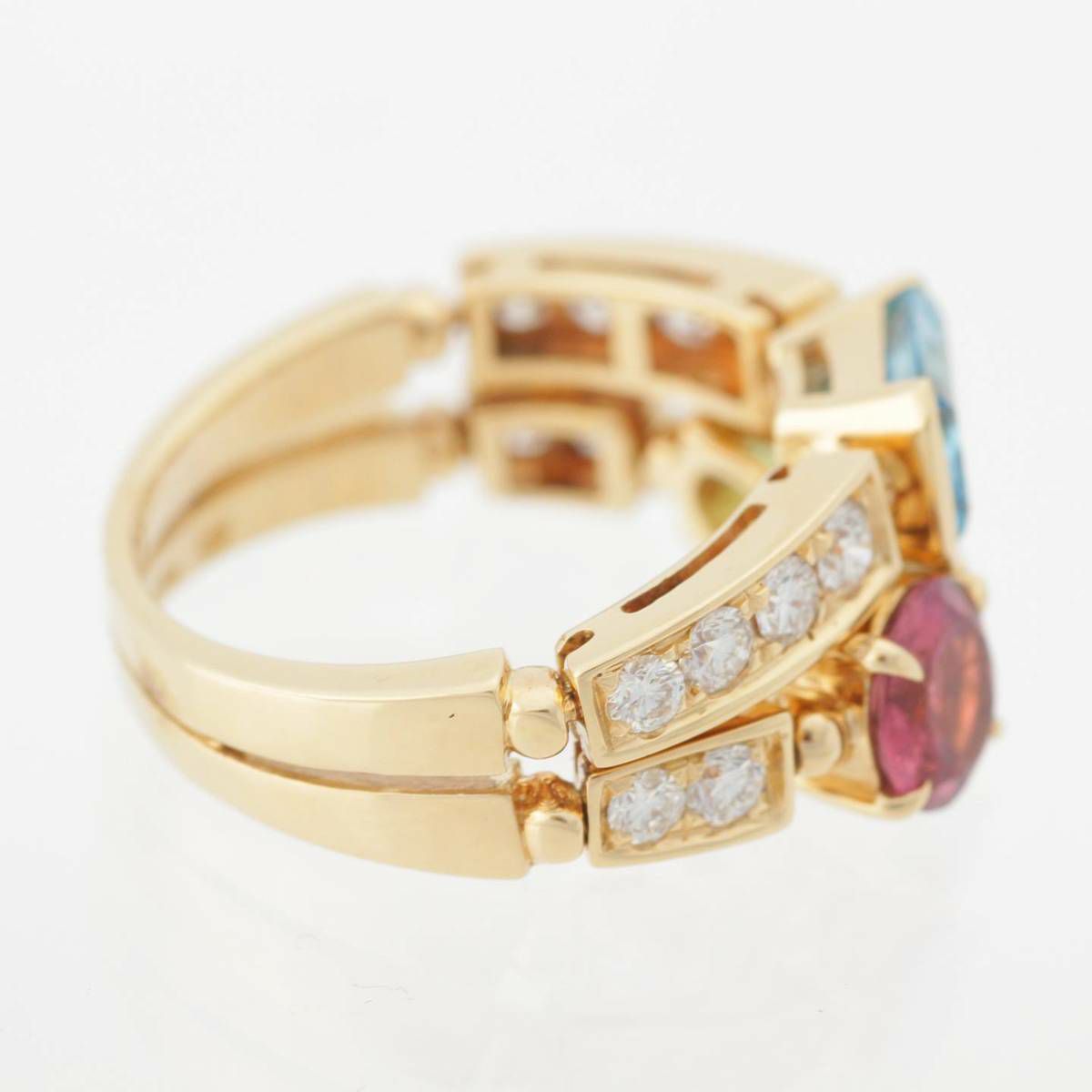 ブルガリ BVLGARI アレグラ K18YG ペリドット トパーズ トルマリン ダイヤリング イエローゴールド 7.7g