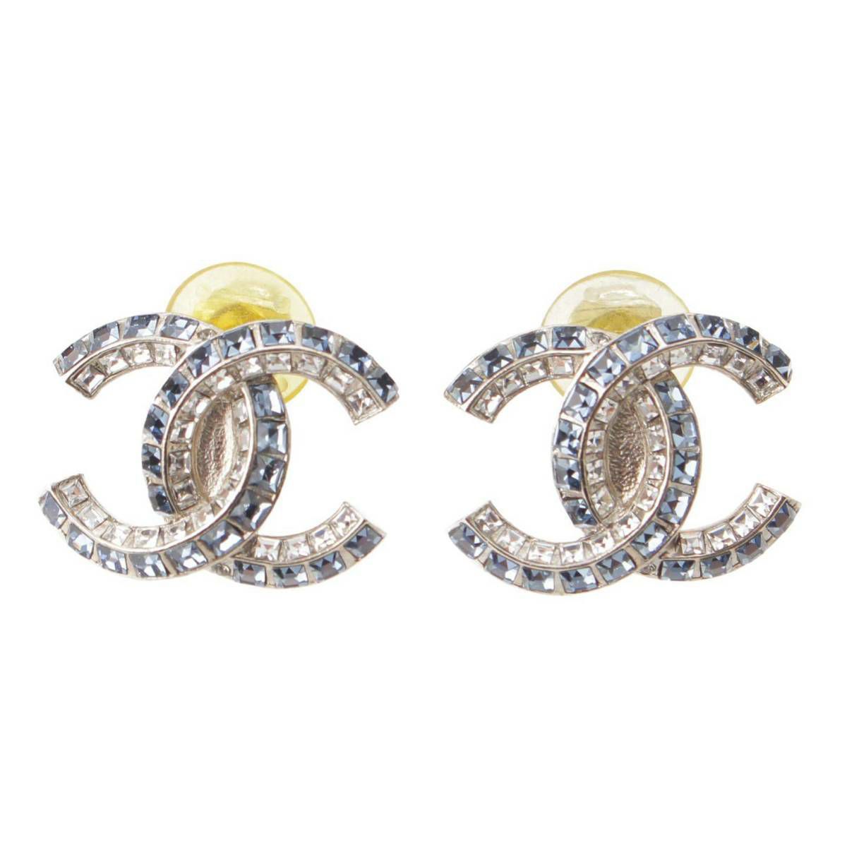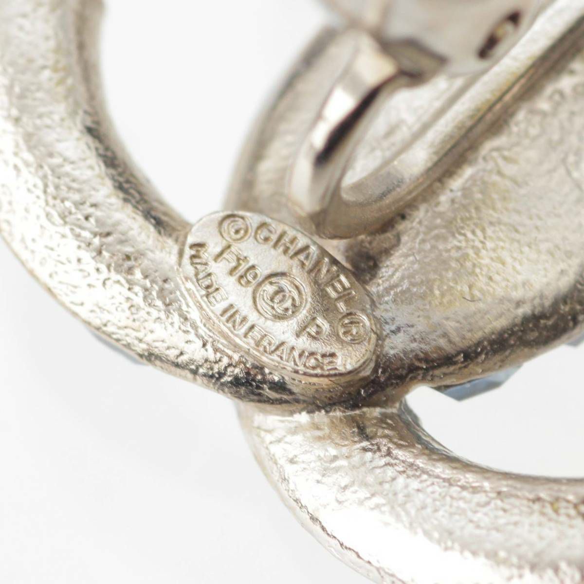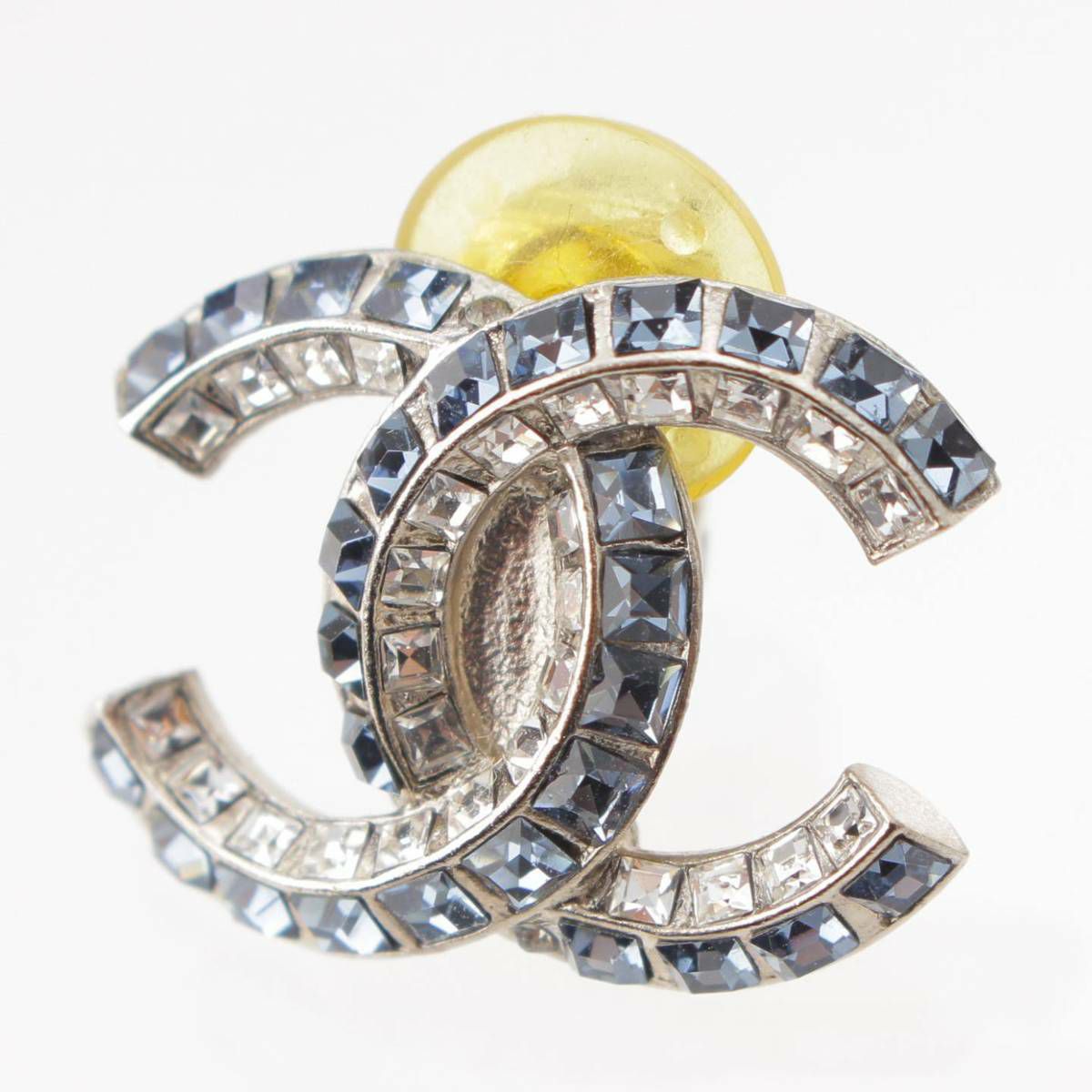 シャネル F19P ココマーク ラインストーン ピアス イヤリング シルバー×ブルー