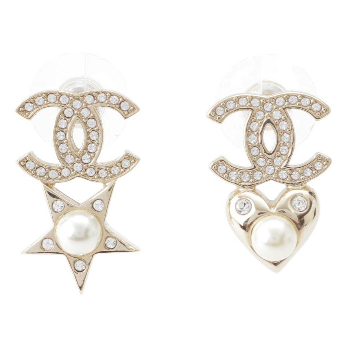 シャネル B19B ココマーク ハート スター パール ラインストーン ピアス ゴールド