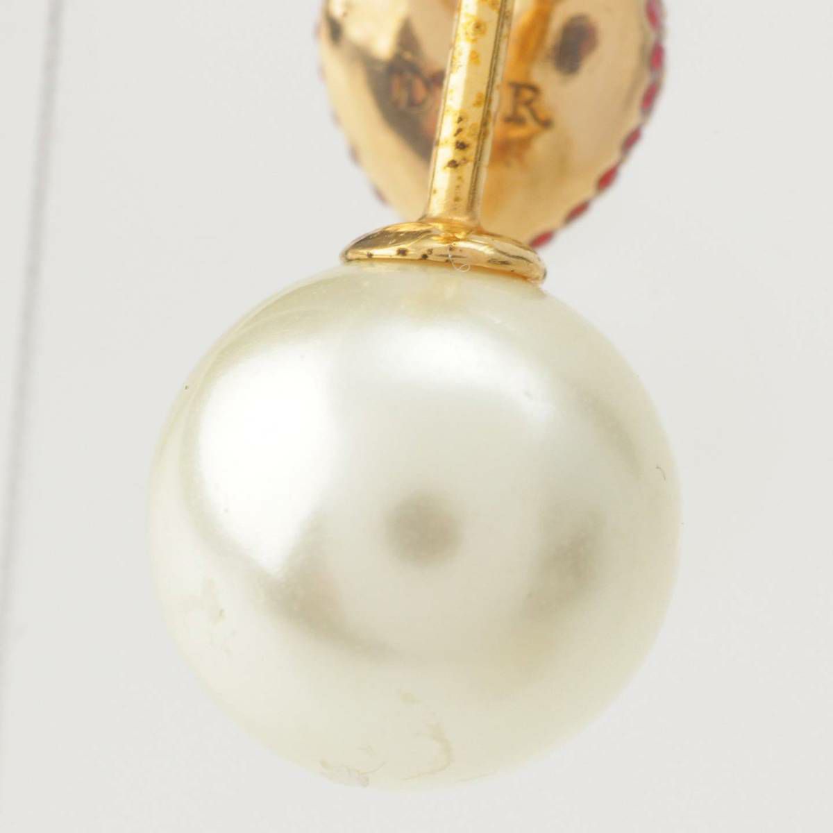 ディオール DIOR Tribales パール ラインストーン ハート スイング ピアス 片側のみ ゴールド