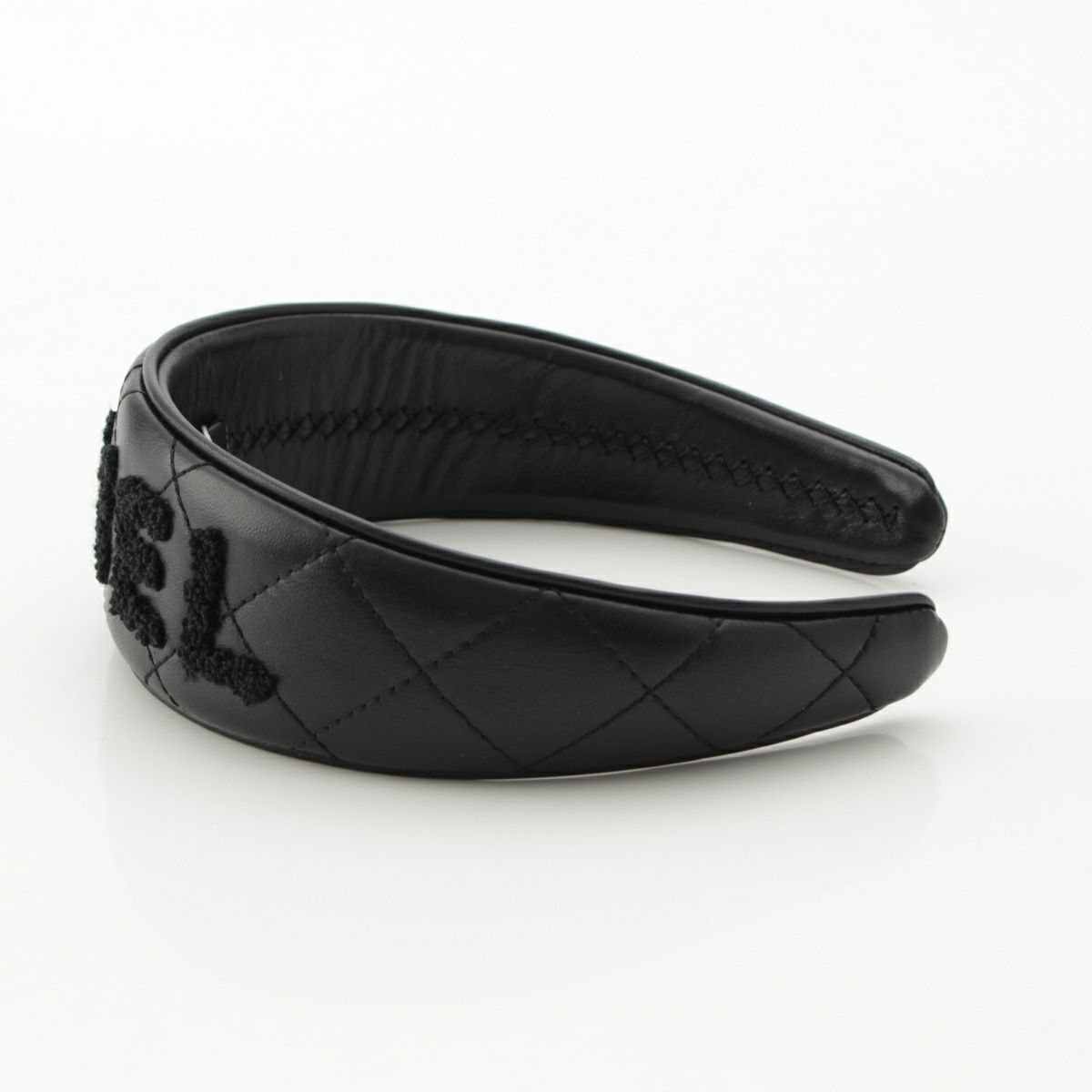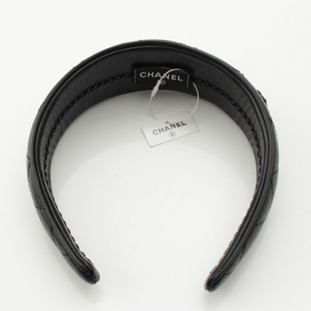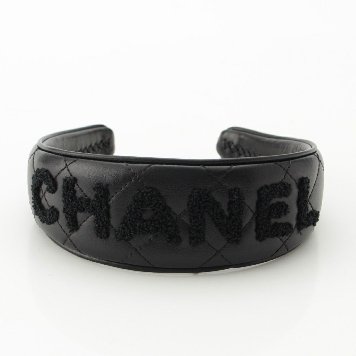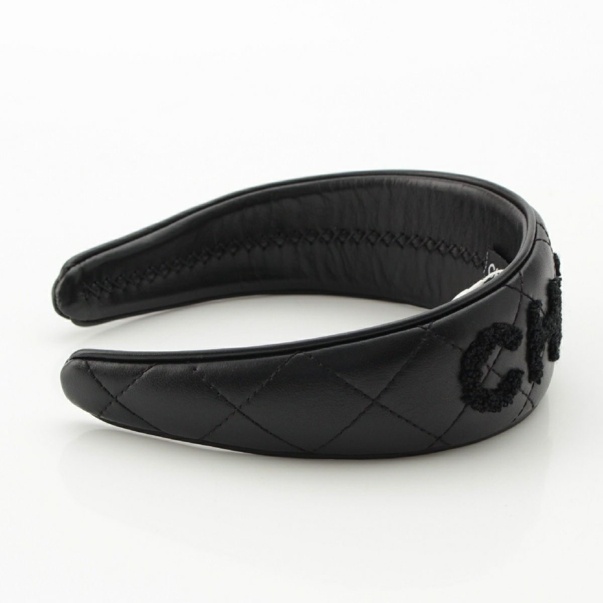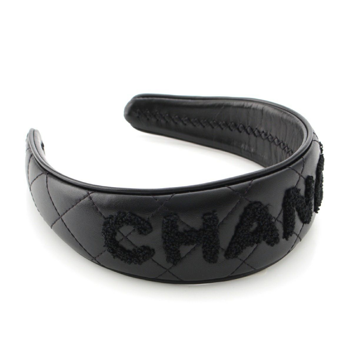 シャネル ラムスキン ロゴ マトラッセ カチューシャ ヘアアクセサリー ブラック