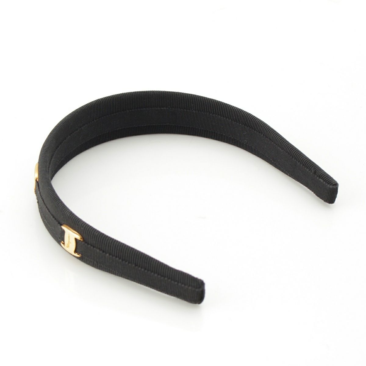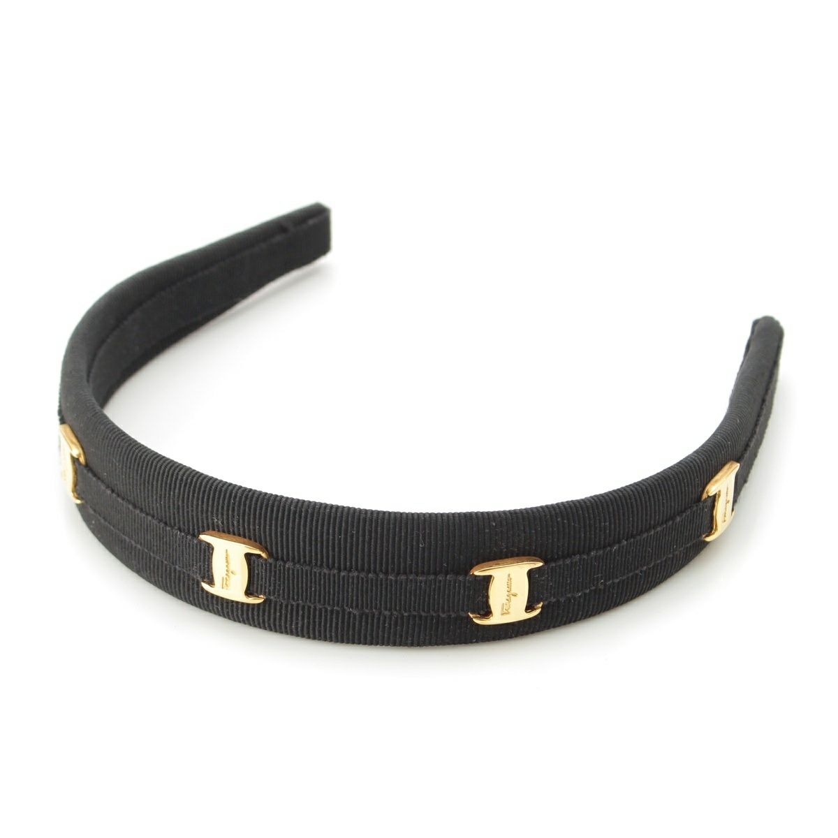 サルヴァトーレフェラガモ ヴィンテージ ヴァラ金具 グログランテープ カチューシャ ヘアアクセサリー ブラック GPゴールド