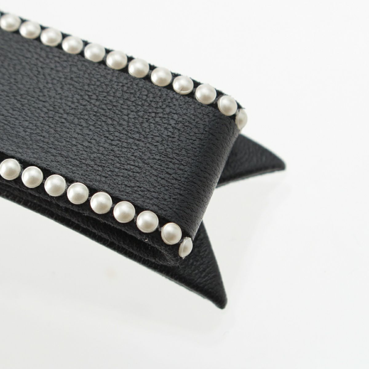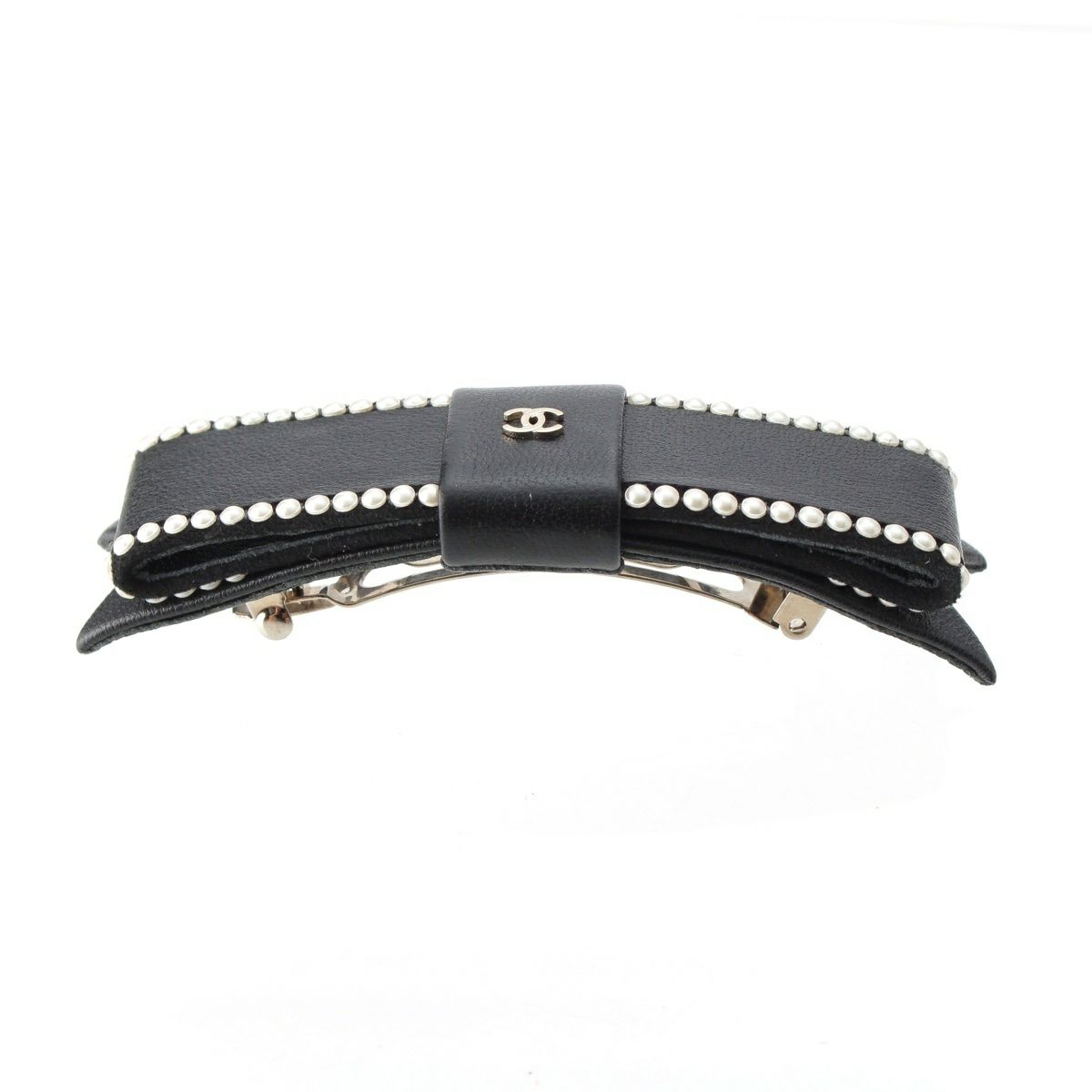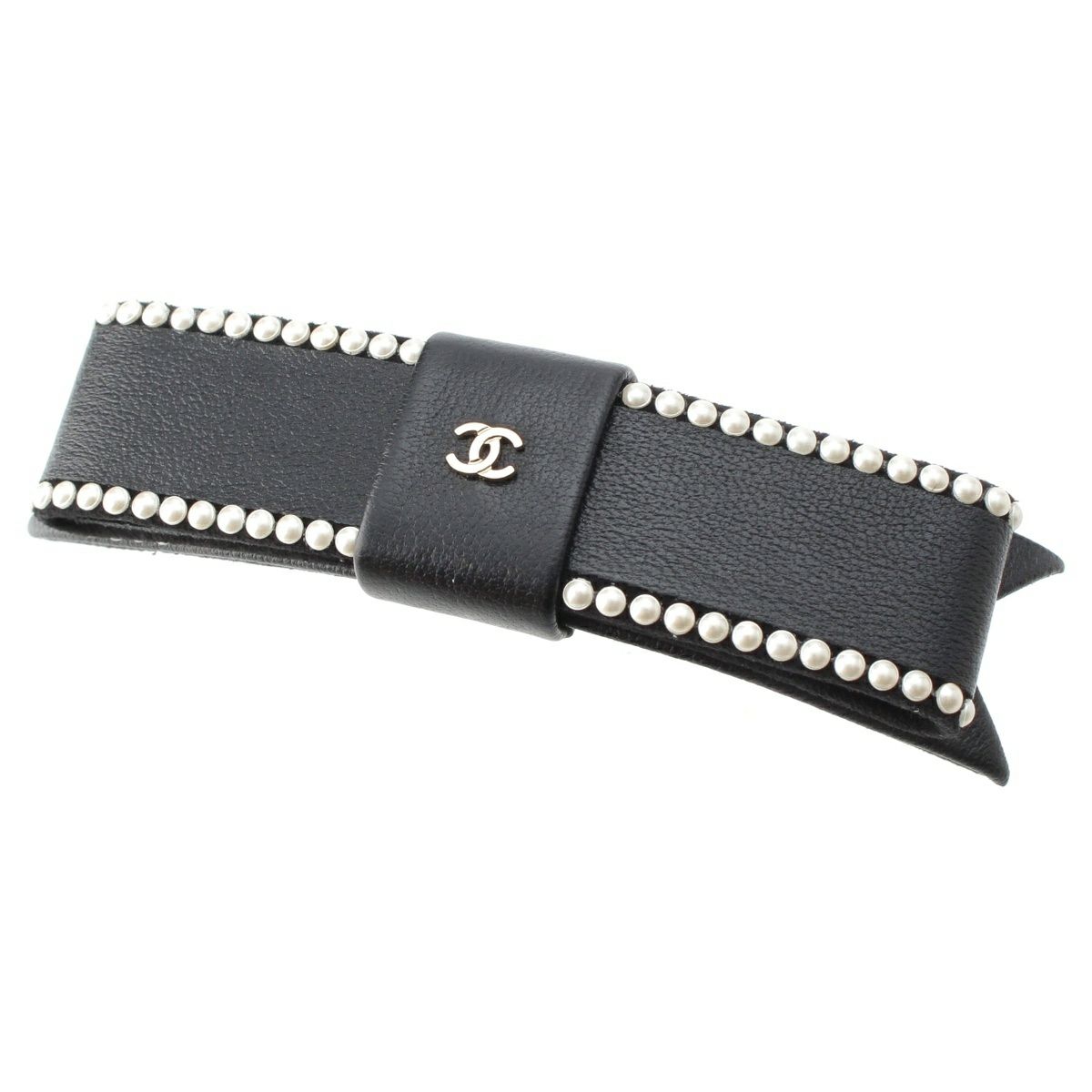 シャネル 23S ラムスキン リボンモチーフ パール ココマーク バレッタ ヘアアクセサリー AA9134 ブラック