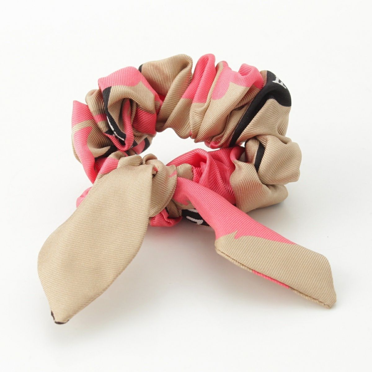 フェンディ シルク ロゴ シュシュ ヘアアクセサリー ベージュ ピンク
