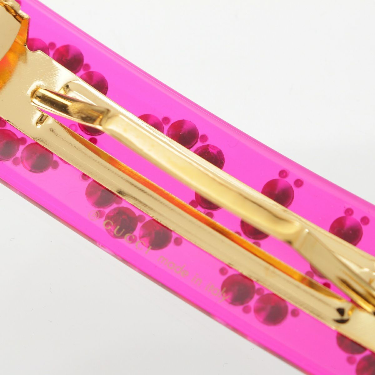 グッチ ロゴ ラインストーン バレッタ ヘアアクセサリー ピンク
