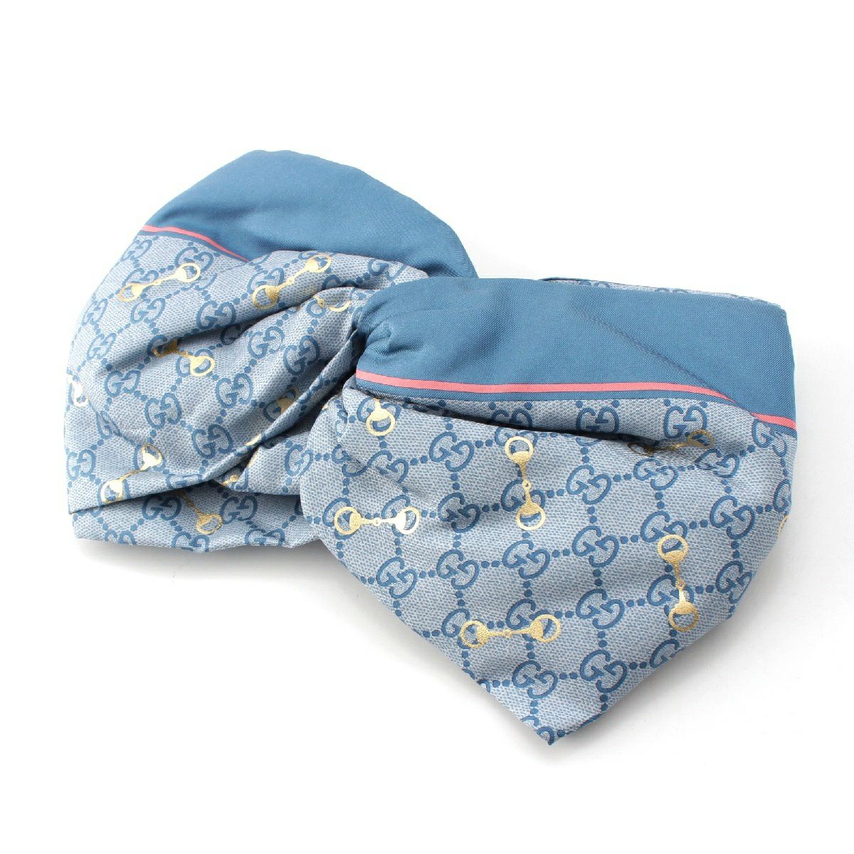 グッチ シルク ホースビット マイクロGG ロゴ バンド ヘアアクセサリー リボン 676087 ブルー M