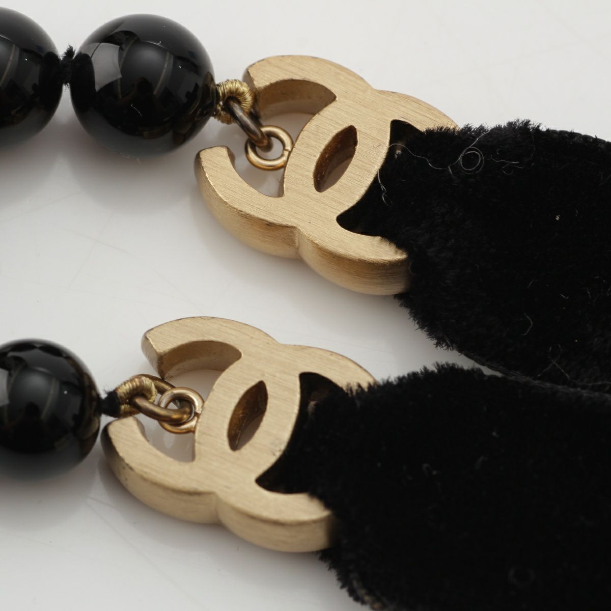 シャネル ベロア リボン ブラックストーン ネックレス ココマーク アクセサリー 03P ブラック