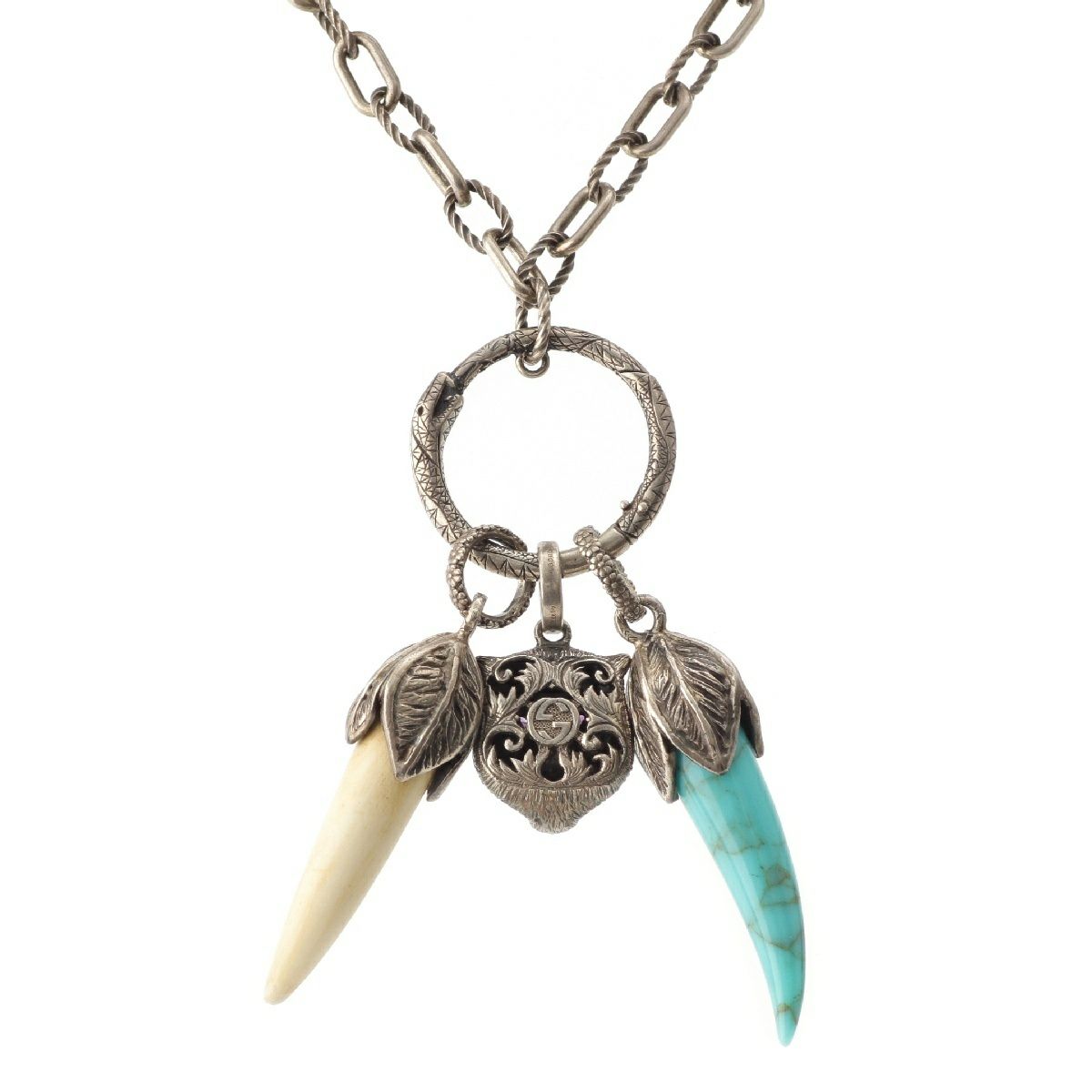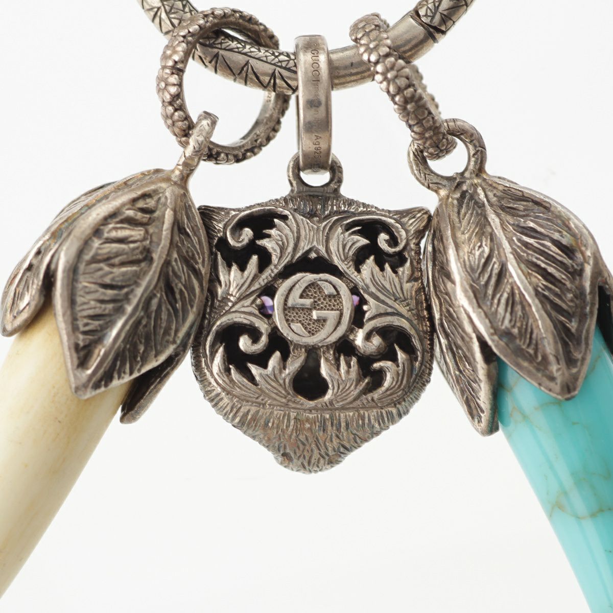 グッチ タイガー ファング スネーク ネックレス アクセサリー 925 シルバー ブルー