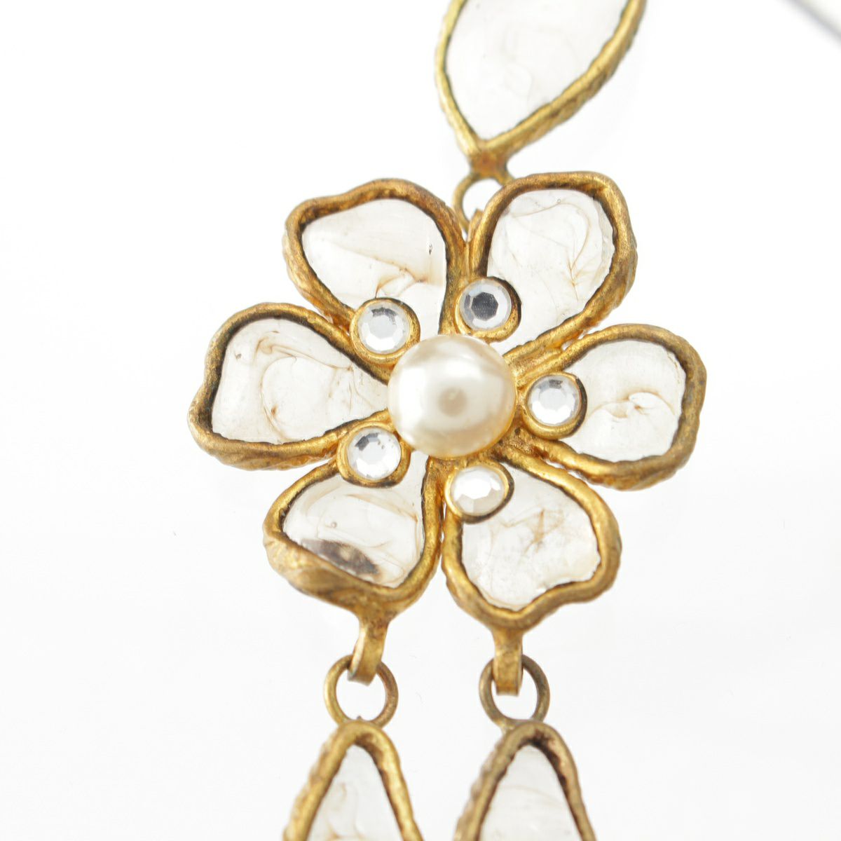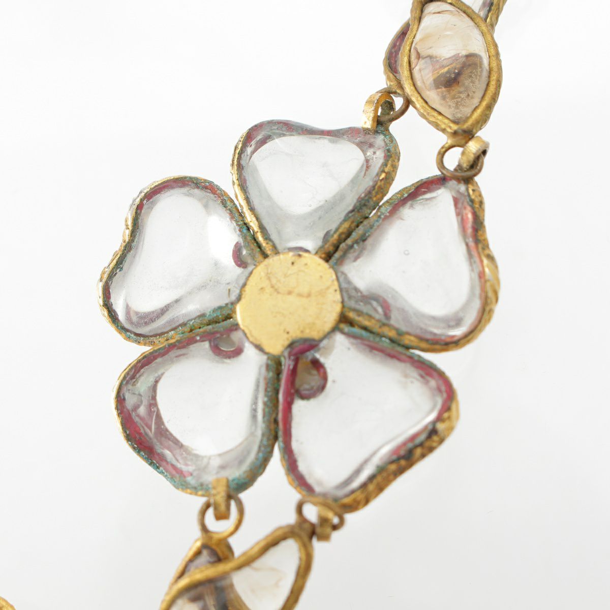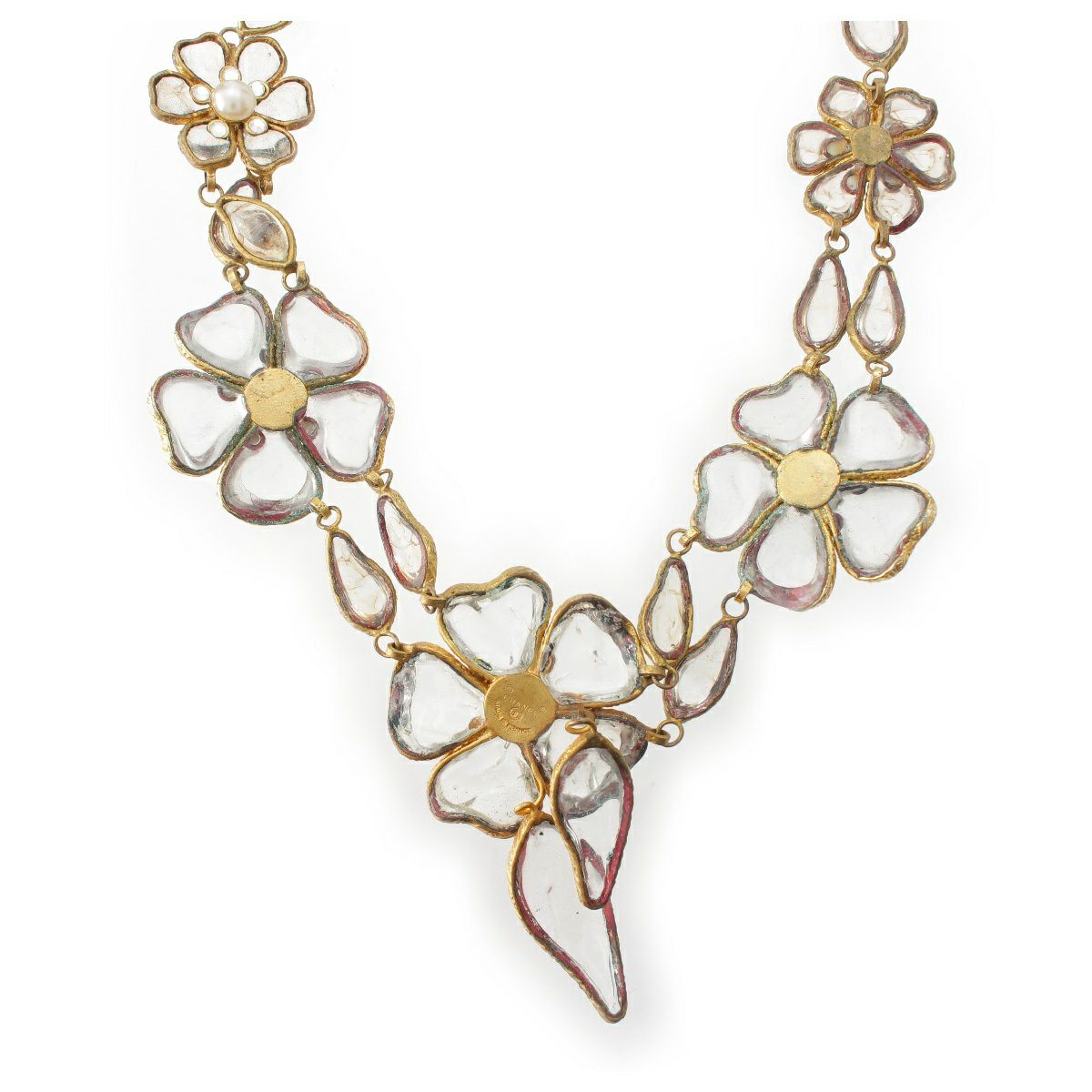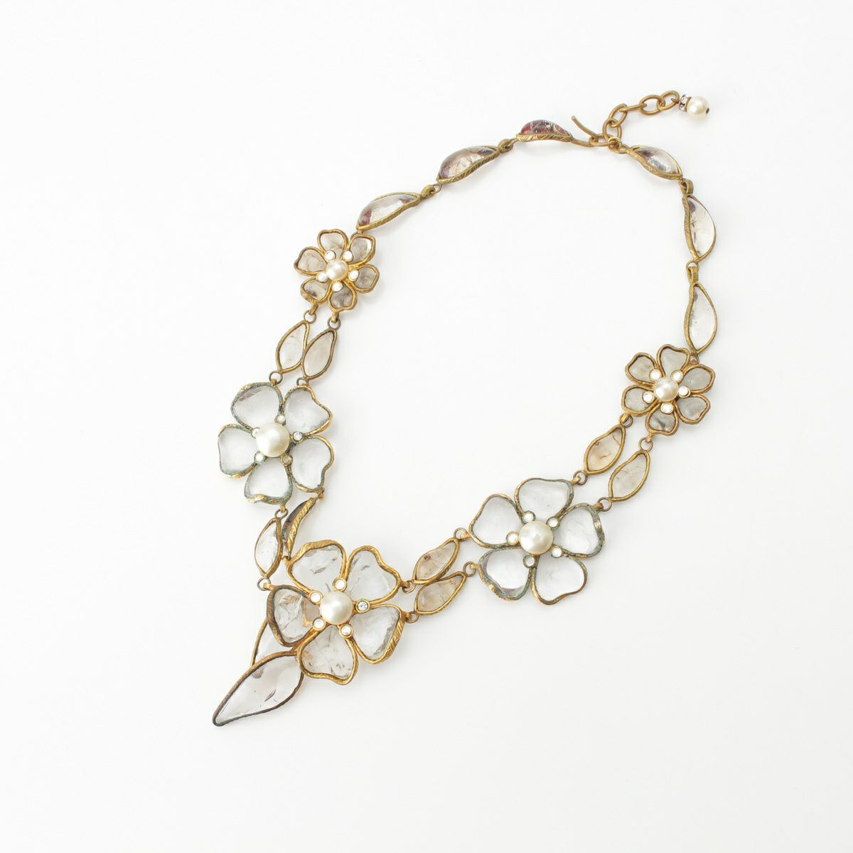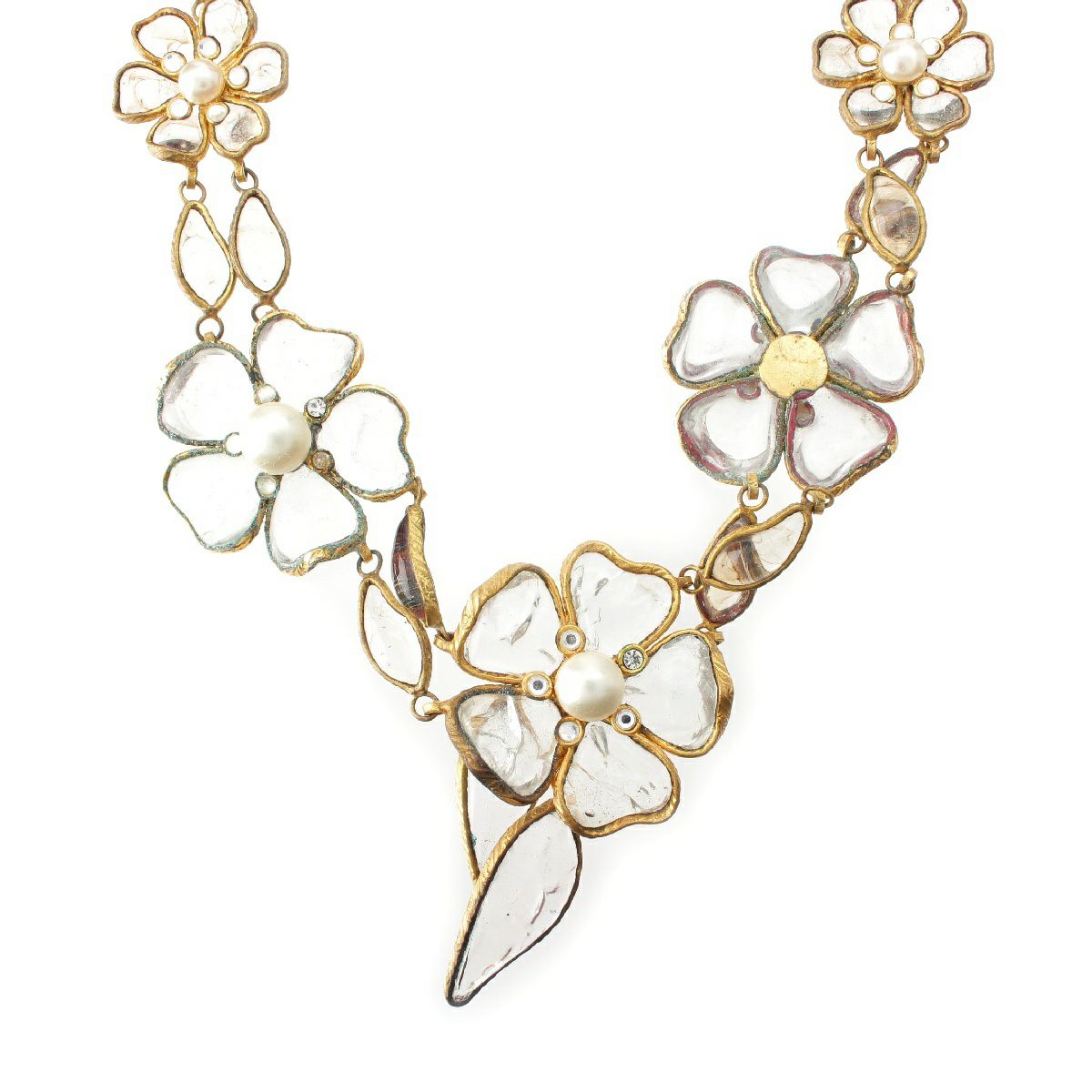 シャネル 70S パール ヴィンテージ クリア フラワー グリポア パール ラインストーン ネックレス ゴールド