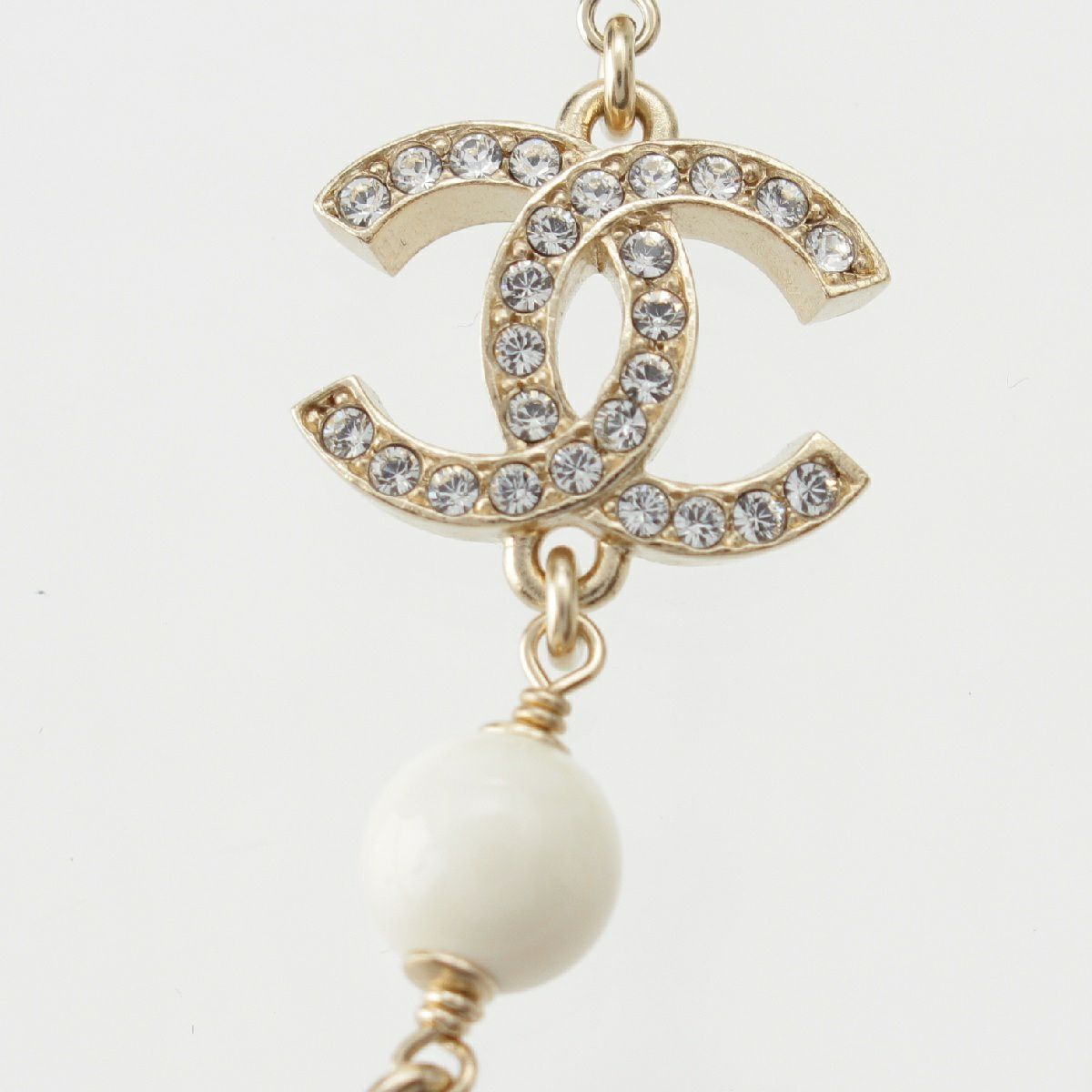 シャネル C23K ロング チェーンネックレス ココマーク ラインストーン パール ホワイト ゴールド