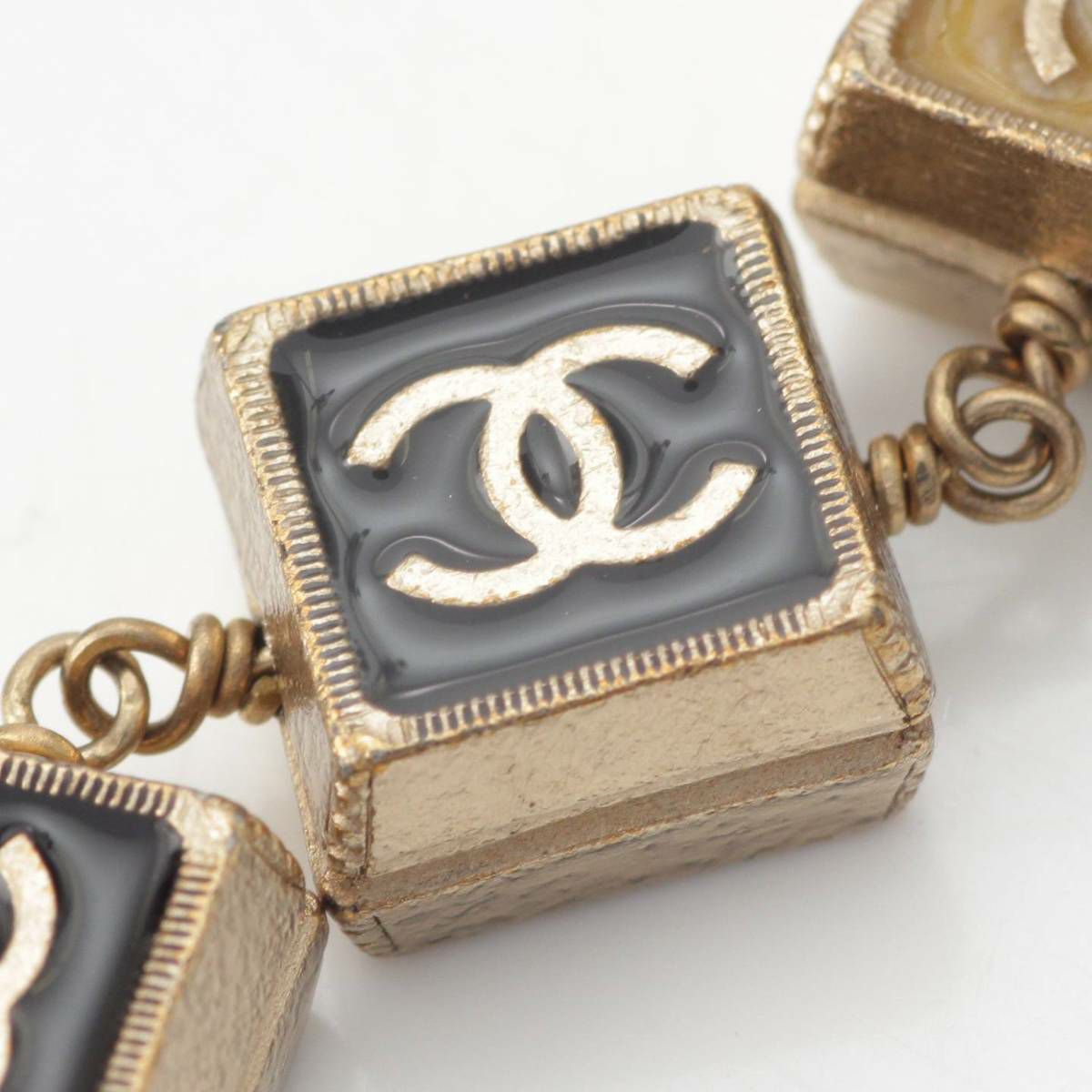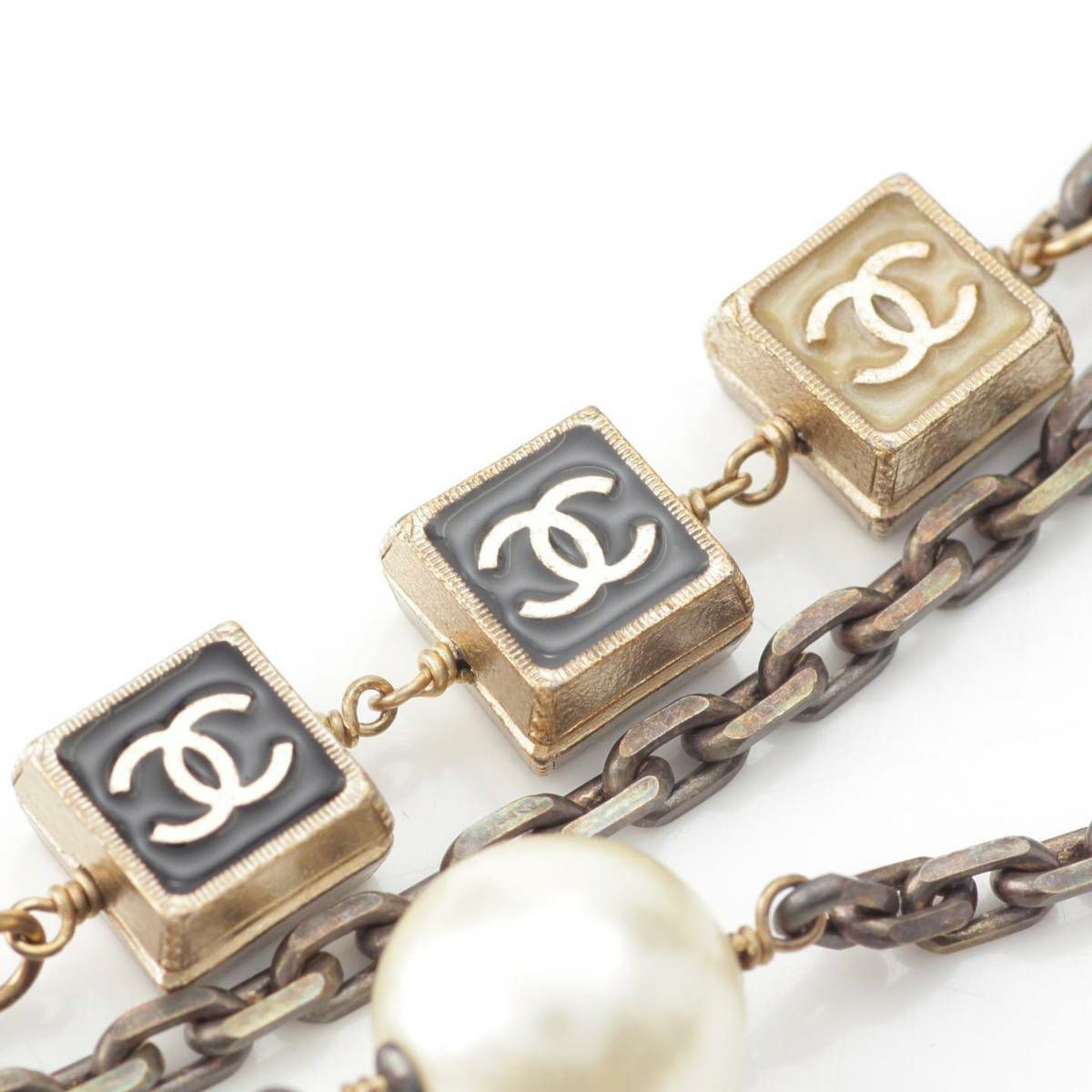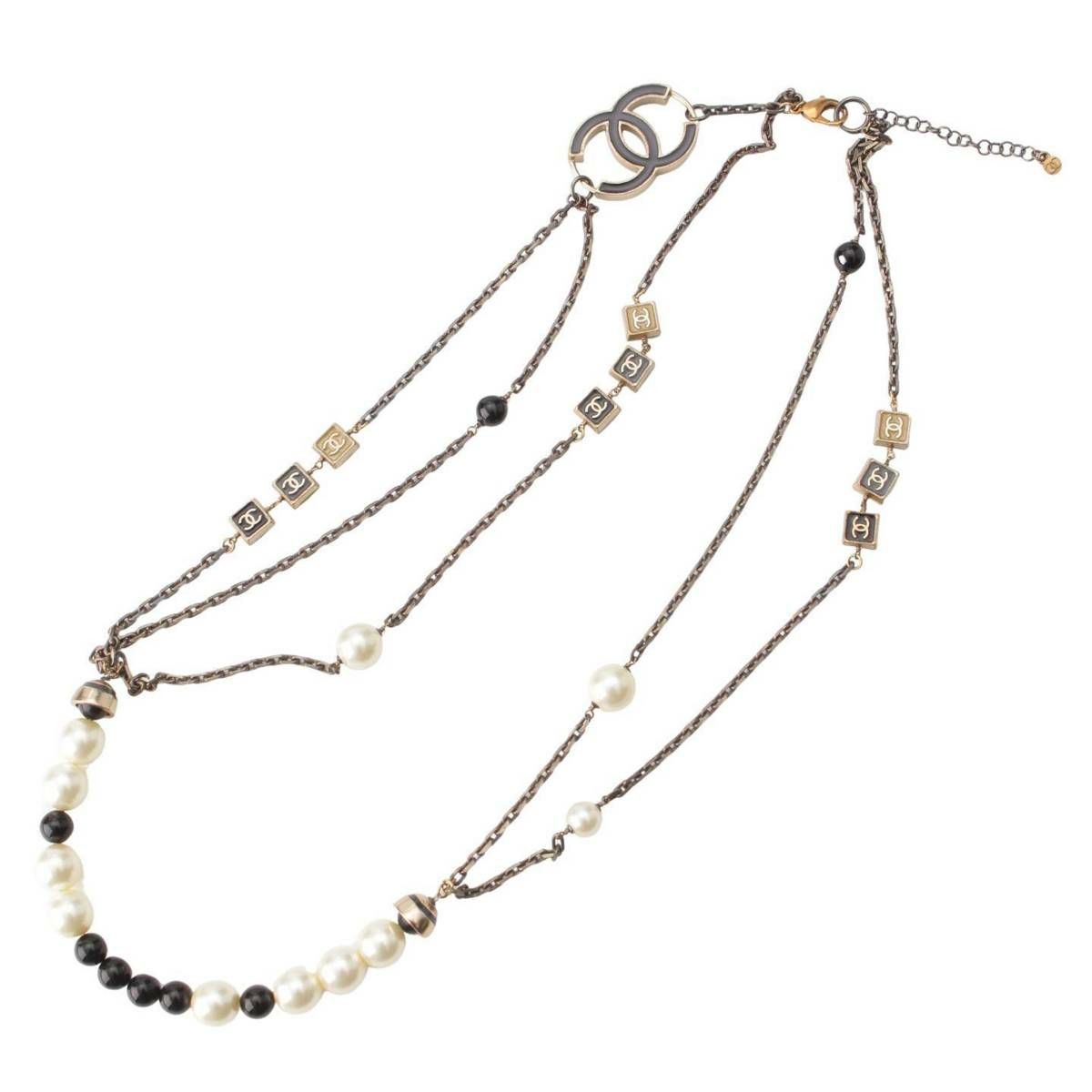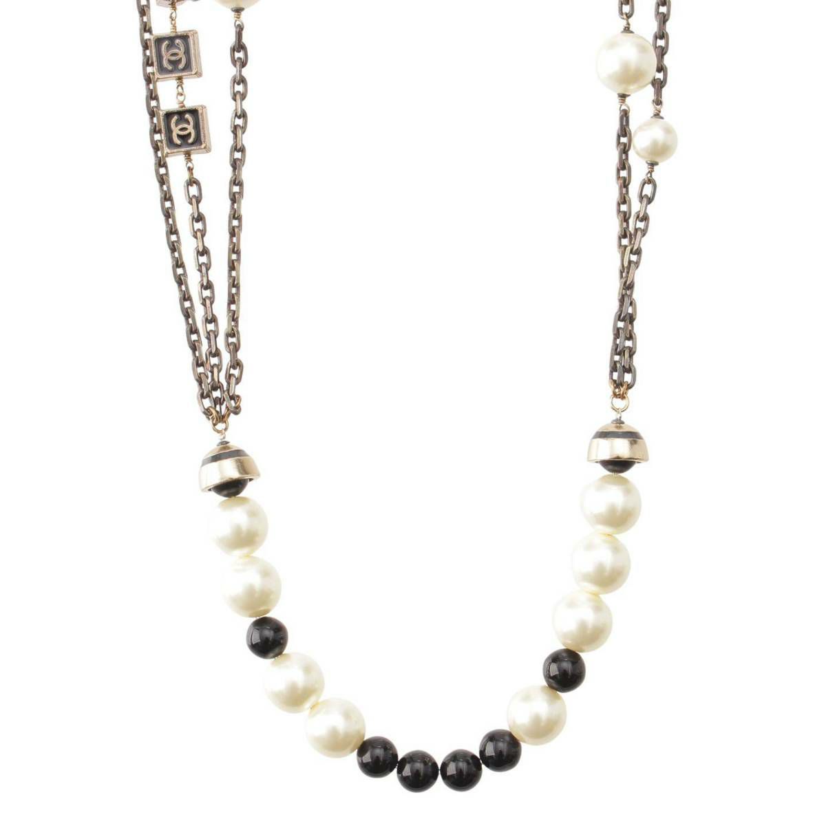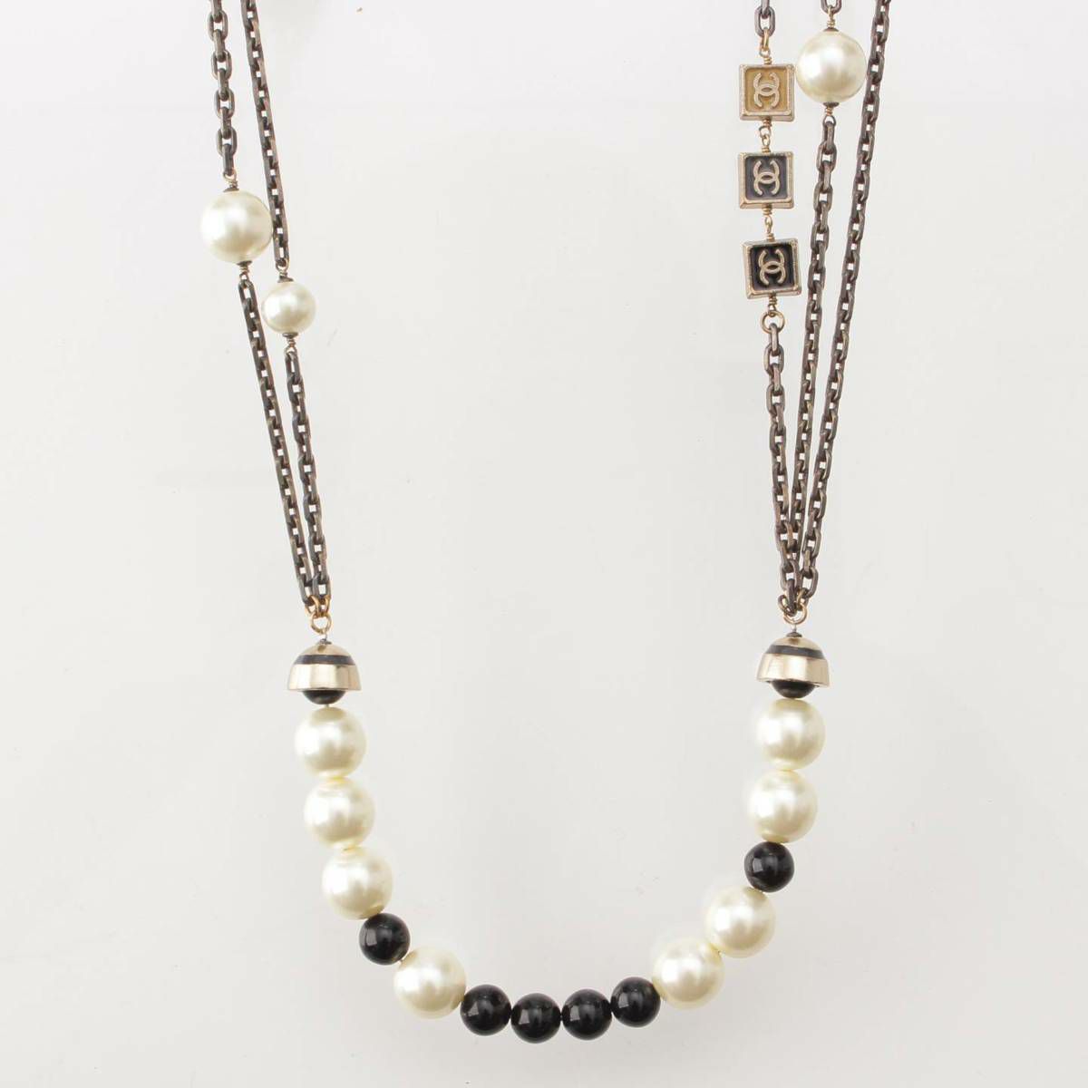 シャネル 03P ココマーク フェイクパール チェーン ネックレス ブラック×ベージュ