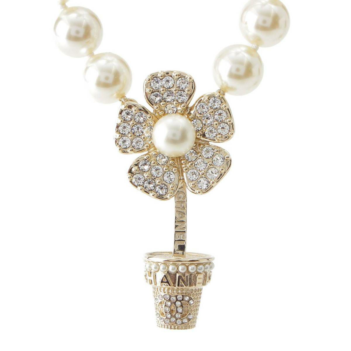 シャネル B23S ココマーク フラワー チョーカー ネックレス パール ビジュー ゴールド