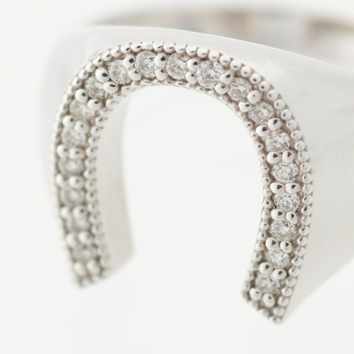 ノーブランド ホースシュー ダイヤモンド 0.10ct 馬蹄 リング 指輪 Au750 K18 ホワイトゴールド 5.3g