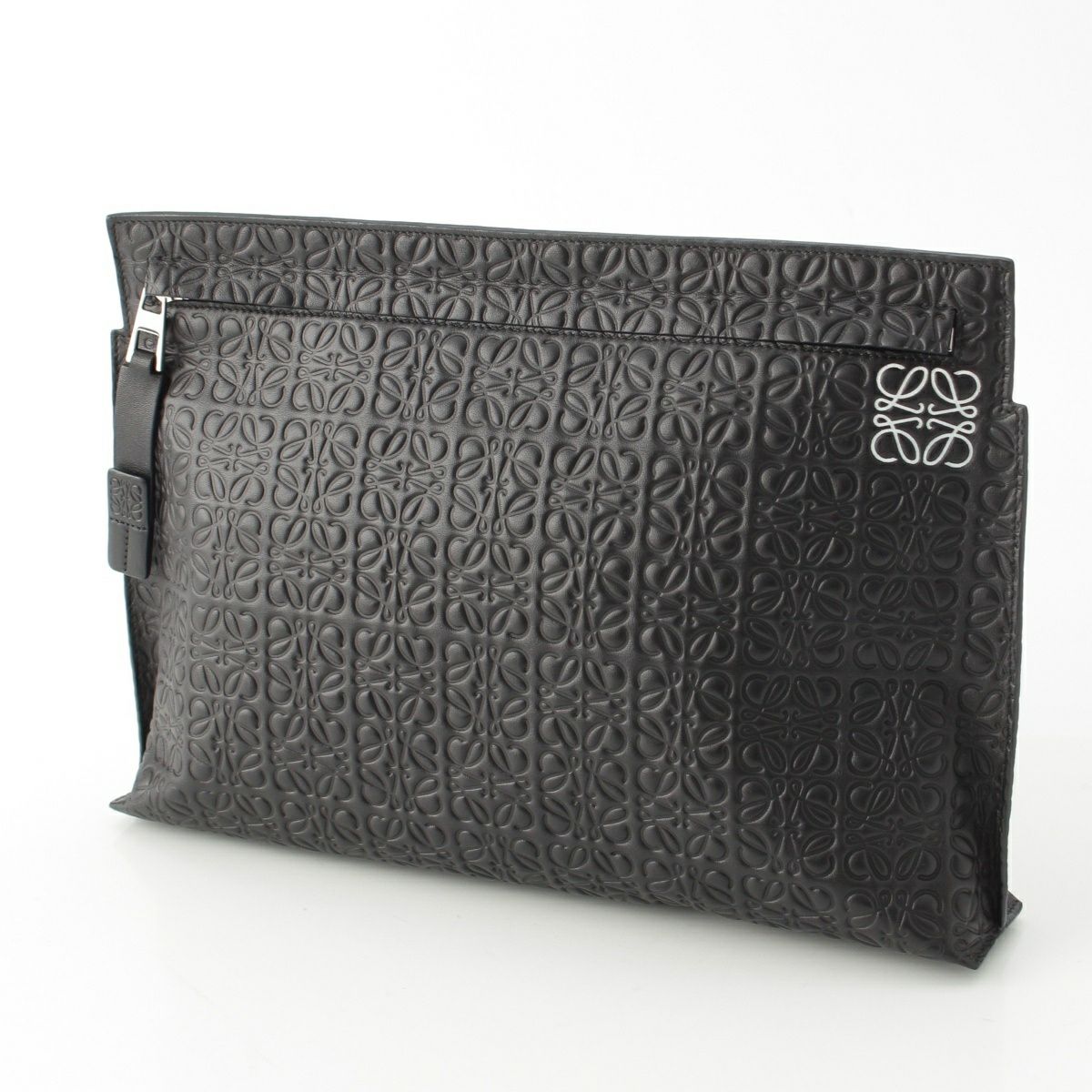 ロエベ レザー リピートアナグラム クラッチバッグ ブラック