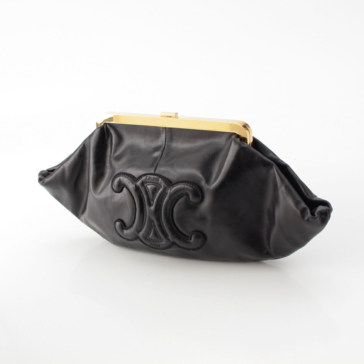 セリーヌ レザー トリオンフロゴ スライドロック セカンドバッグ ポーチ ブラック