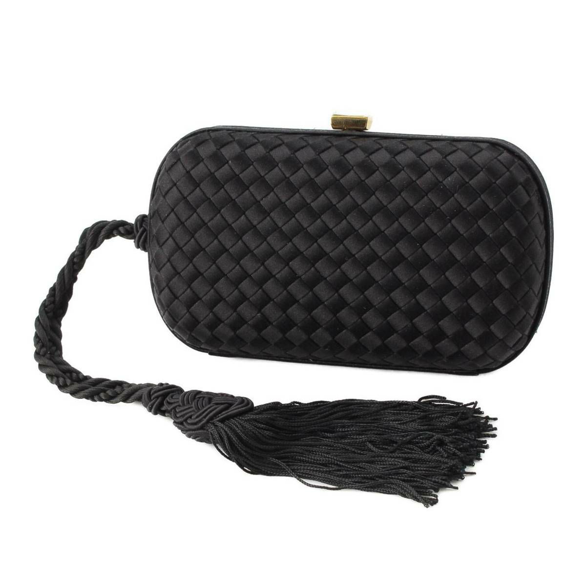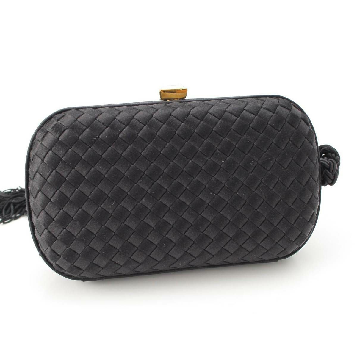 ボッテガヴェネタ Bottega Veneta イントレチャート クラッチバッグ クリスタル フリンジ がま口 ブラック ゴールド