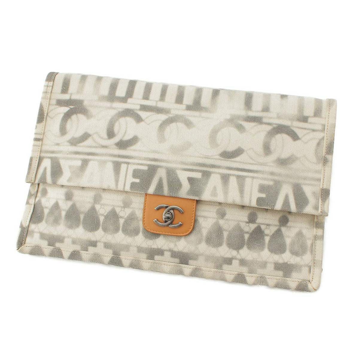 シャネル 24番台 パフューム キャンバス クラッチバッグ バッグ A91749 グレー ホワイト