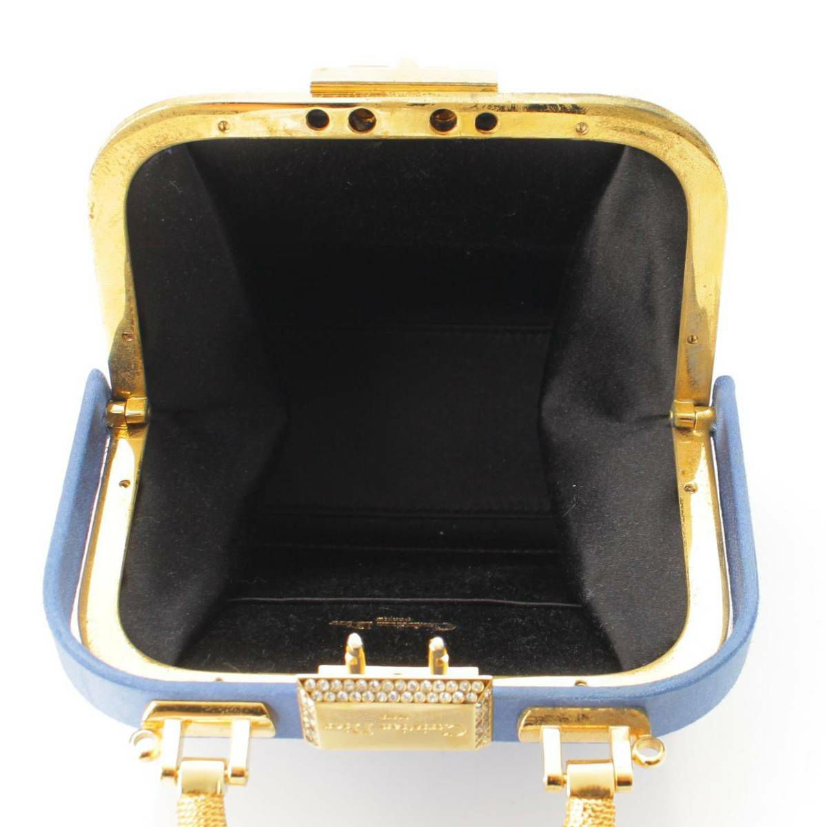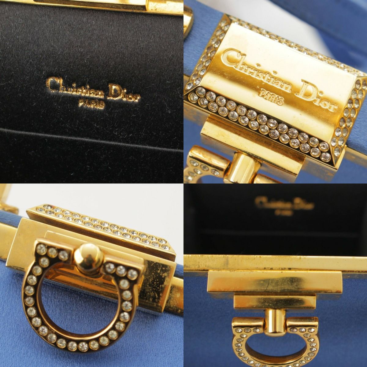 クリスチャンディオール ヴィンテージ ラインストーン サテン がま口 2WAY ショルダー ハンドバッグ 29205 ブルー