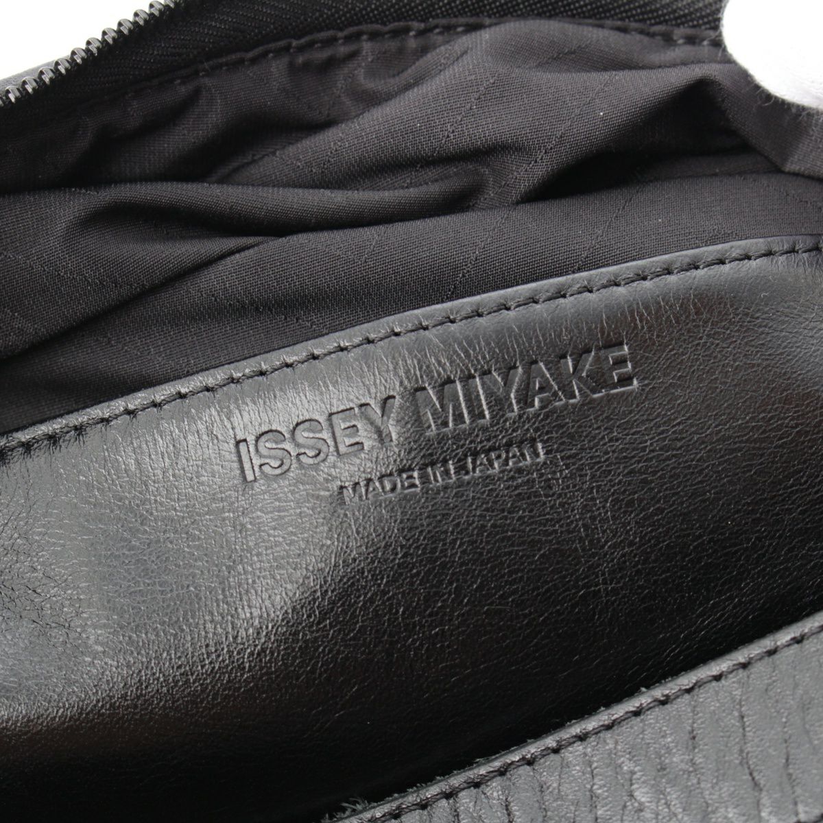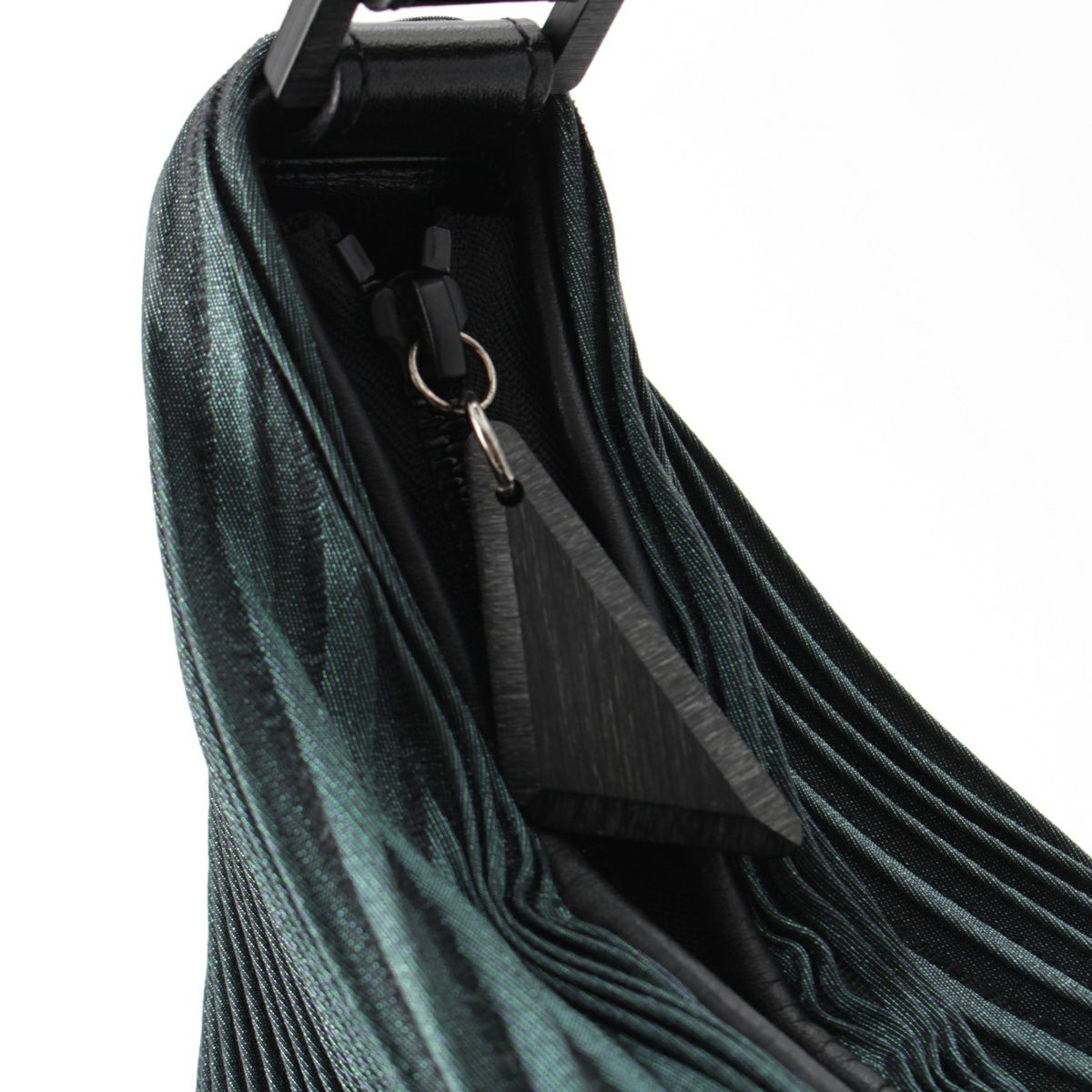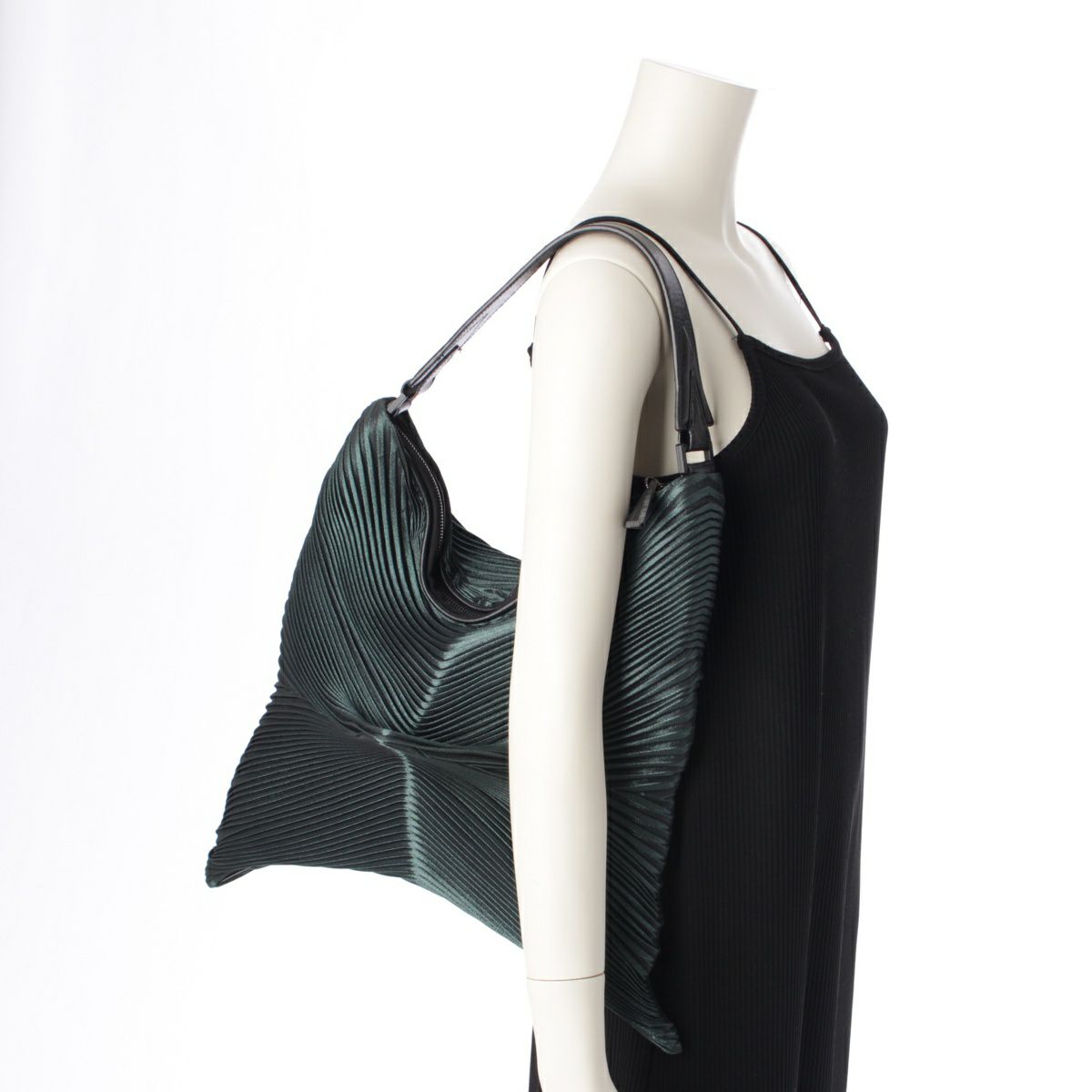 イッセイミヤケ 16AW レザー 3Dスチーム アーカイブ ストレッチプリーツ ワンショルダー ハンドバッグ グリーン ブラック