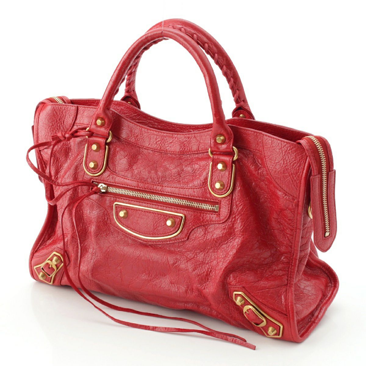 バレンシアガ メタリックエッジシティ レザー ミラー付き 2WAY ショルダー ハンドバッグ 390154 レッド
