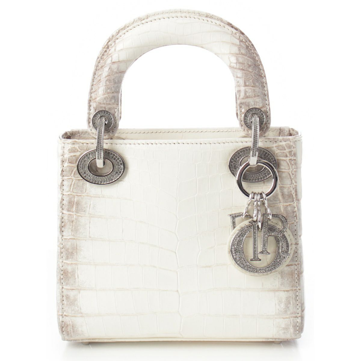 ディオール レディディオール クロコダイル ヒマラヤ ラインストーン 2way ショルダー ハンドバッグ オフホワイト