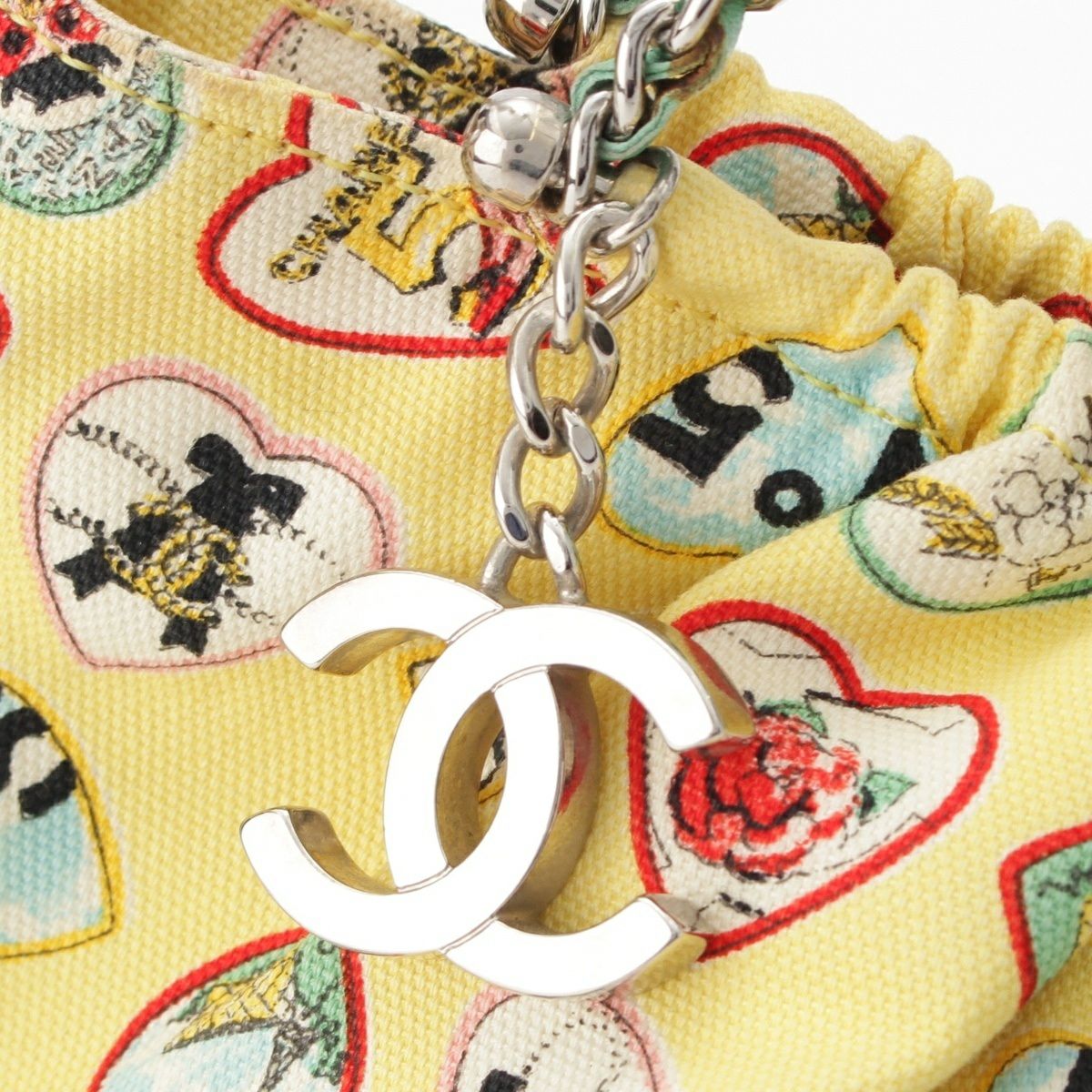 シャネル 2006年 10番台 バレンタイン ハート アイコン ココマーク チェーンショルダー ハンドバッグ イエロー